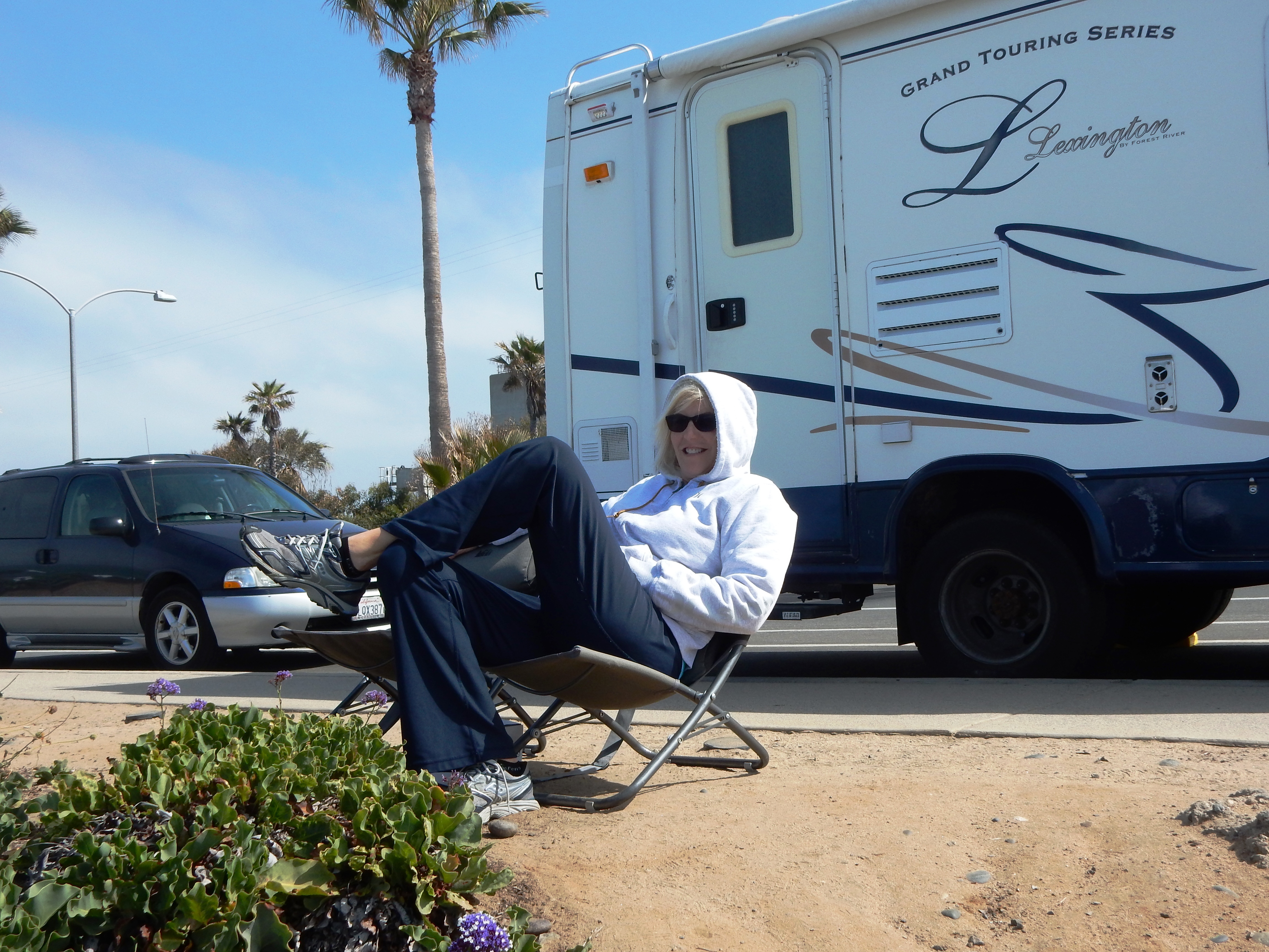 The weather was fantastic. We dried off on our towels and I made us a couple of sandwiches and we enjoyed the beach and people watching for a few hours before the wind got a little chilly and we went back up to the motorhome. Relaxed inside, did a little meditation and sat at the table and did some writing.