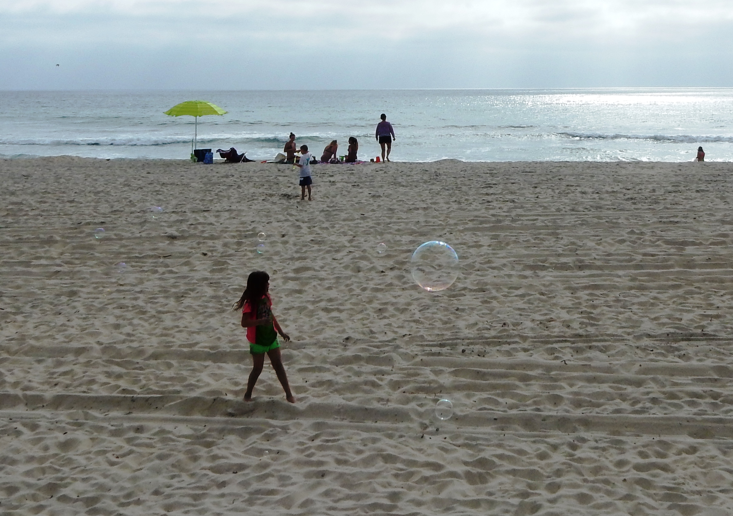 Lots of families and older people, many overdressed for their stroll on the boardwalk. Surfers, volley ballers, RVers, runners, dudes who like to stack rocks on top of each other, squirrels, rabbits, kite flyers and kids blowing giant bubbles. Everyone was out for a beautiful sunny day.