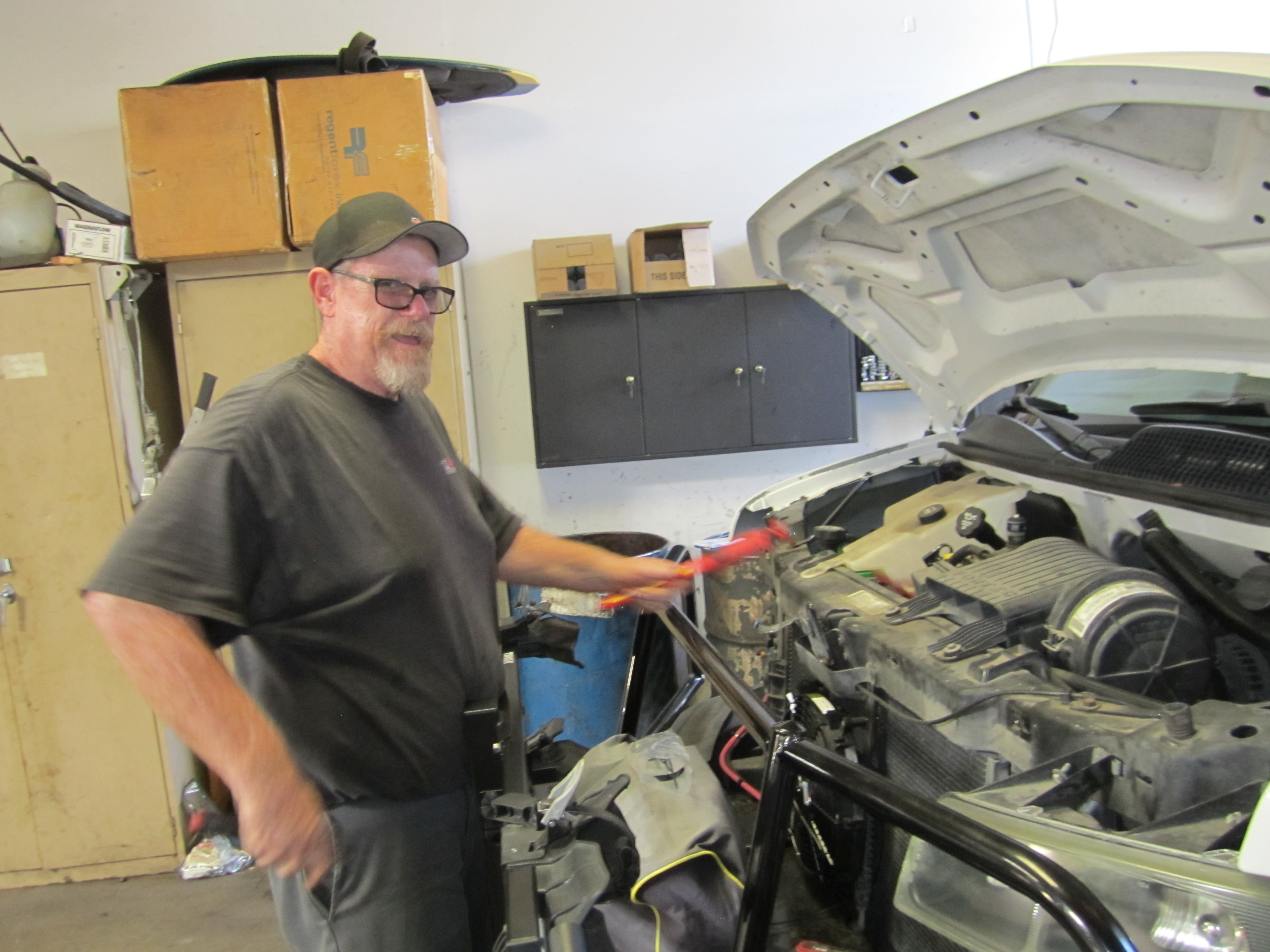 Ken ordered the auxiliary fan I wanted to install for additional ventilation for the transmission cooler. We removed the grill from the RV and prepared for the placement of the fan and thermostat. Not having a ride home, I settled in on the internet and did some research on OBD2 code readers that connect via smart phone.