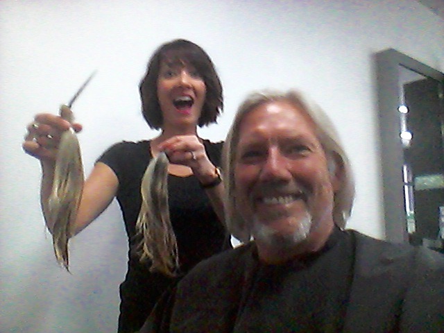Tuesday, I decided maybe a new look would change my outlook on the situation. Much to PJ chagrin, I went for a hair style that will be easy care for moving down the road. Like a breathe of fresh air.