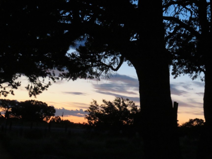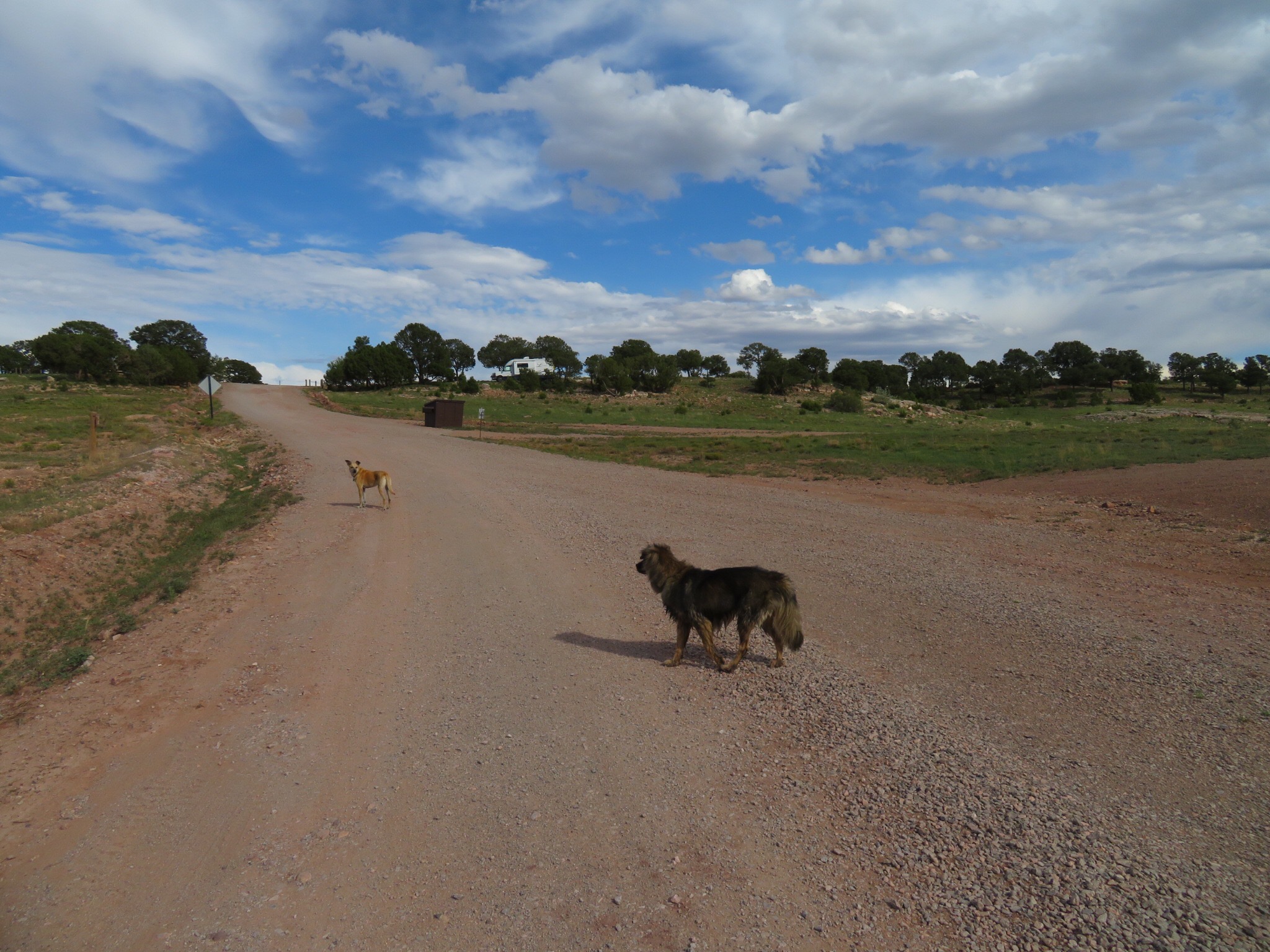 So nice to have no people anywhere near. We can make as much off key noise as we want to and there is no one to hear. A little rain squall passed through and it sent us inside to eat peanut butter sandwiches and talk about our next few stops on our magical mystery tour. No real concrete plans but we think Santa Fe is next up on the itinerary. Since we are disconnected from phone or Internet, we plan to just wing it and figure out the what and where of it when we show up.