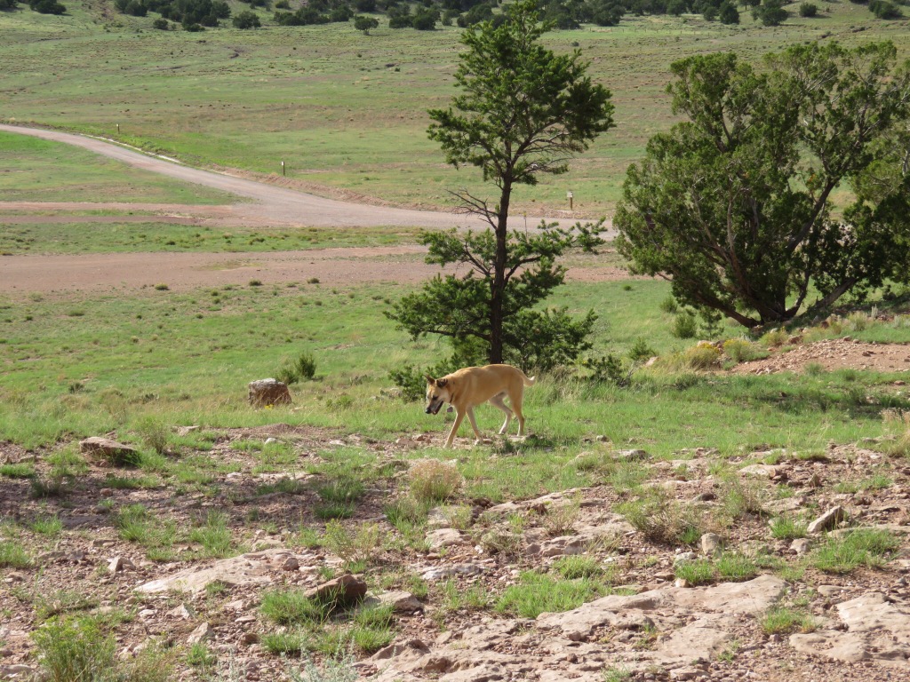 PJ went out to the road watching as the herds of wild horses arrived for their daily grazing along the grassland below us along the lakefront. She took a million pictures and sat with Koda as the colts frolicked and the horses went to the lake to drink. They come out in the morning and move away at night. Truly enchanting in the ‘Land of Enchantment’.