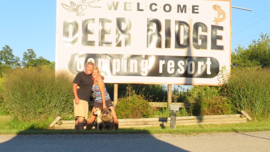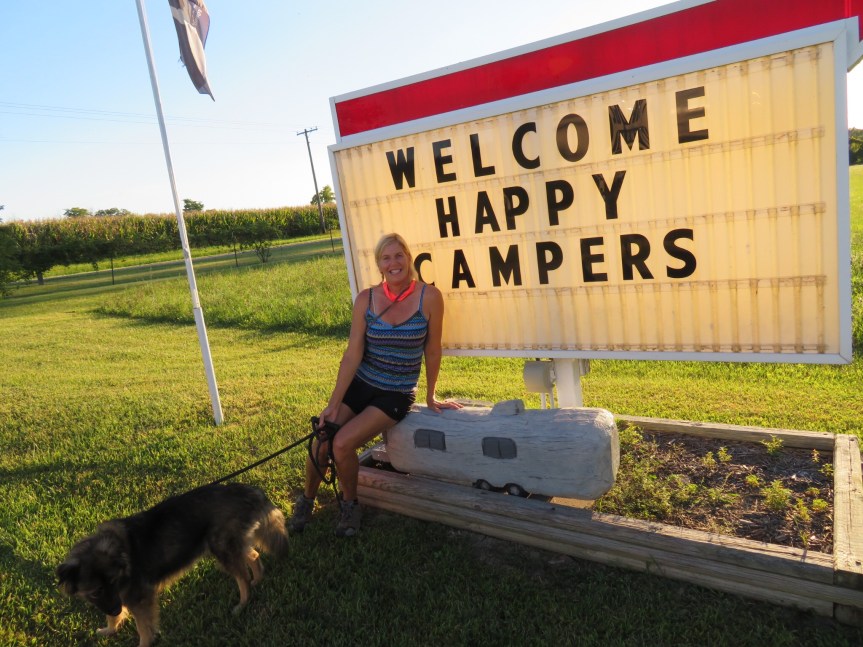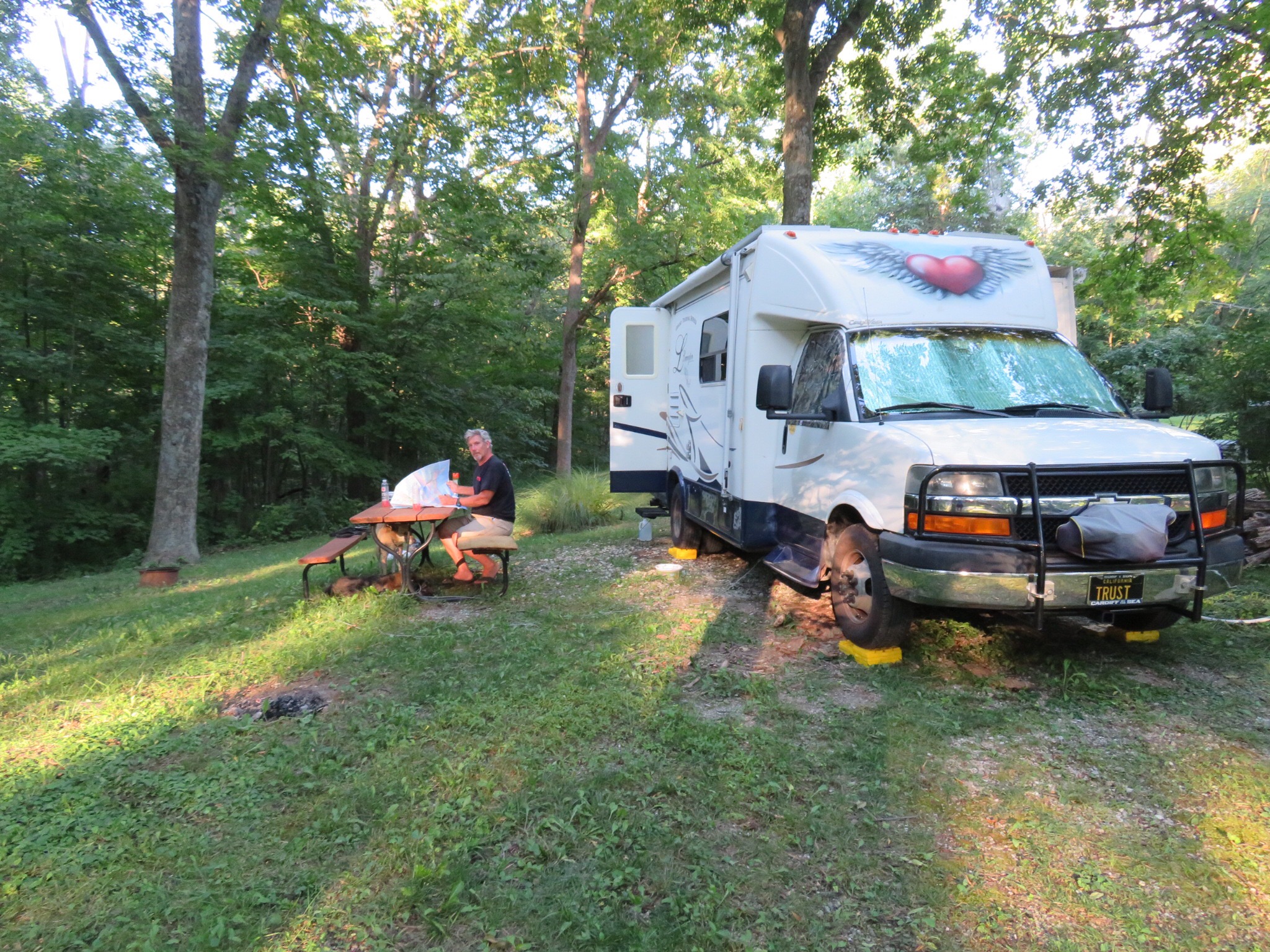 Somewhere along the line we gained another hour and entered EST. After 6 hours on the road, we arrived at Deer Ridge Camping Resort, a modest little campground set among a grove of trees along a small creek. I had called earlier and got one of the few remaining spots.