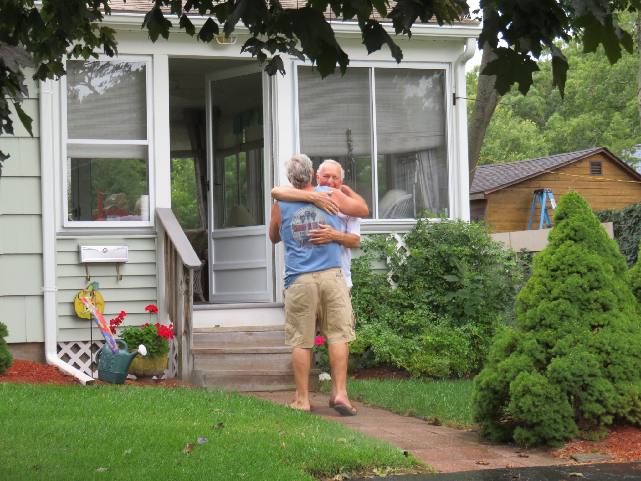 After our celebratory dip in the ocean, we continued on to Narragansett. We parked out in front of the Atlantic Inn where we had stayed for a weekend on our last visit and walked around the sea wall for a moment until a rain squall sent us back into the camper. Drove out past the Coast Guard House, a fine restaurant where the power went out last time we were there and we had to dine in the dark. On past main beach and the Narrow River then on to PJ’s parents home in Warwick.