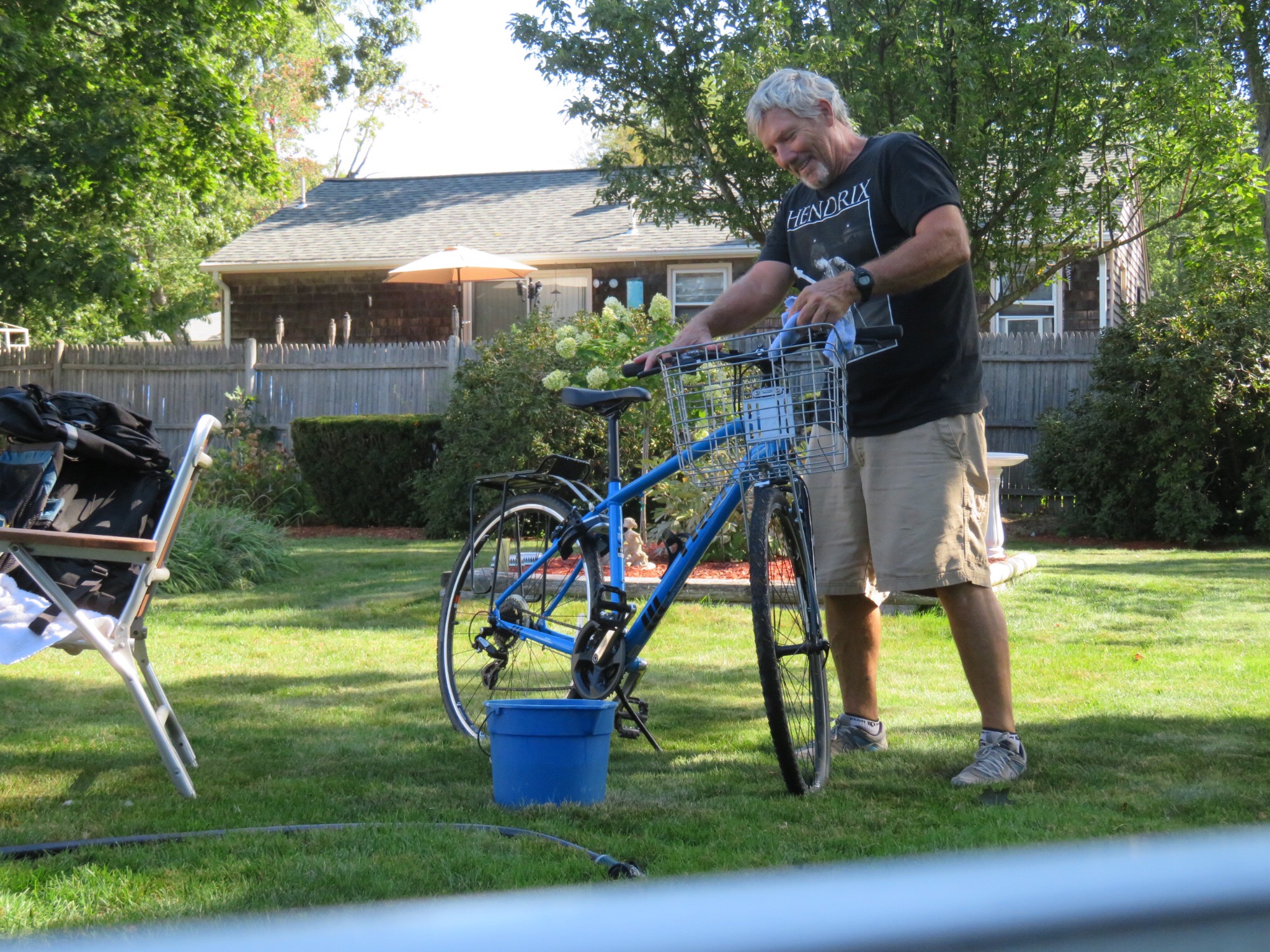 We had a pretty mellow day today. After breakfast, I mowed the back yard then we pulled the bikes out of the shed and gave them a good cleaning up. 3700 miles strapped on the back of a traveling RV had built up quite a layer of dirt.