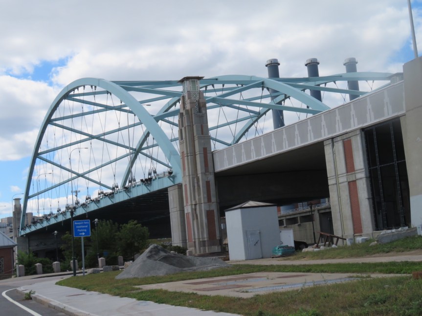 After sleeping in and serving up a leisurely breakfast, Pete suggested we all pile into the Honda and go for a Saturday drive into Providence. The first point of interest on our Ocean State tour was the S.W.A.T. and police practice range that is on the other side of the airport from the house. From Pete and Carole’s house at random times, we often hear the sounds of gunfire in the distance beyond the trees. On many occasions sending the dogs into panting, quivering bouts of anxiety. Pete figured to show us where it all was coming from. No one was there today, but we could see the range through the chain link fence. They have facades of houses and plywood bad guys set up. Can’t believe it is set up only blocks from high density neighborhoods.