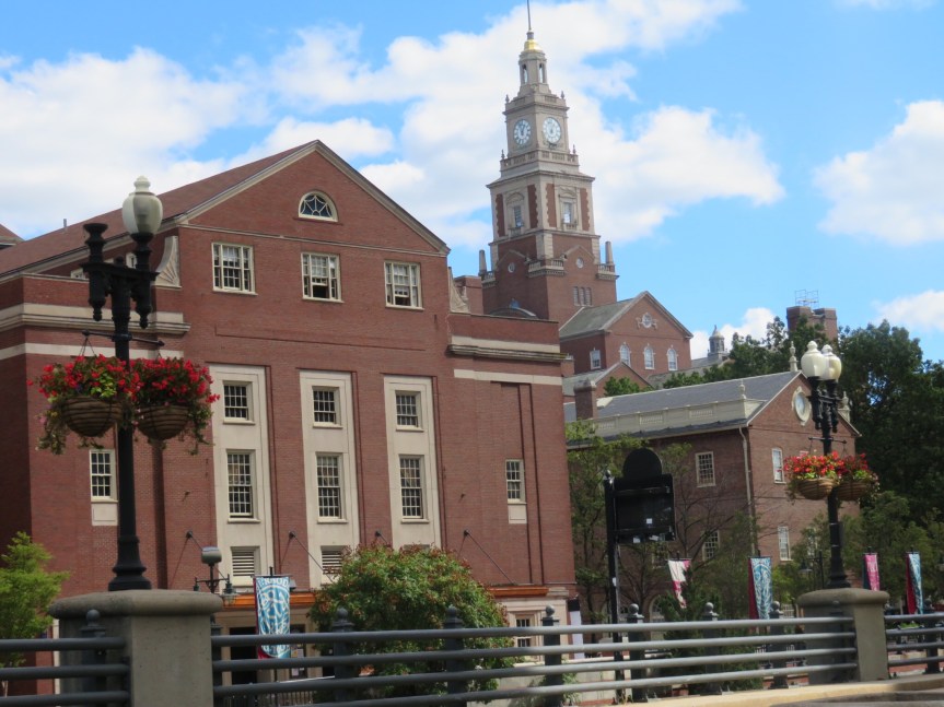 Now that the chores were done, we continued on to downtown Providence driving past the home office of Citizen’s Bank where Pete spent the majority of his adult years helping people finance their homes and businesses. We drove through old historical neighborhoods and ended up passing through the campus at Brown University. There was lots of activity with students filling the streets and filing out of local pubs and eateries as the Harvard football team had just beat Brown 32-22. We worked our through some pockets of traffic back towards the commons by downtown where a Native American group was having an event with drumming and reenactments going on. Parking was close to non-existent so we kept going cruising along the riverfront and heading back towards Warwick.