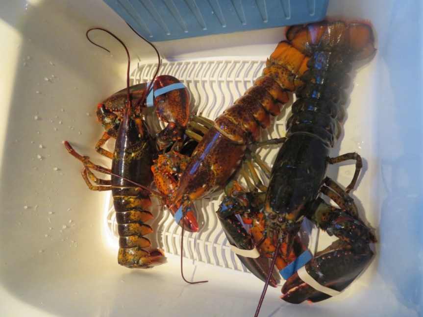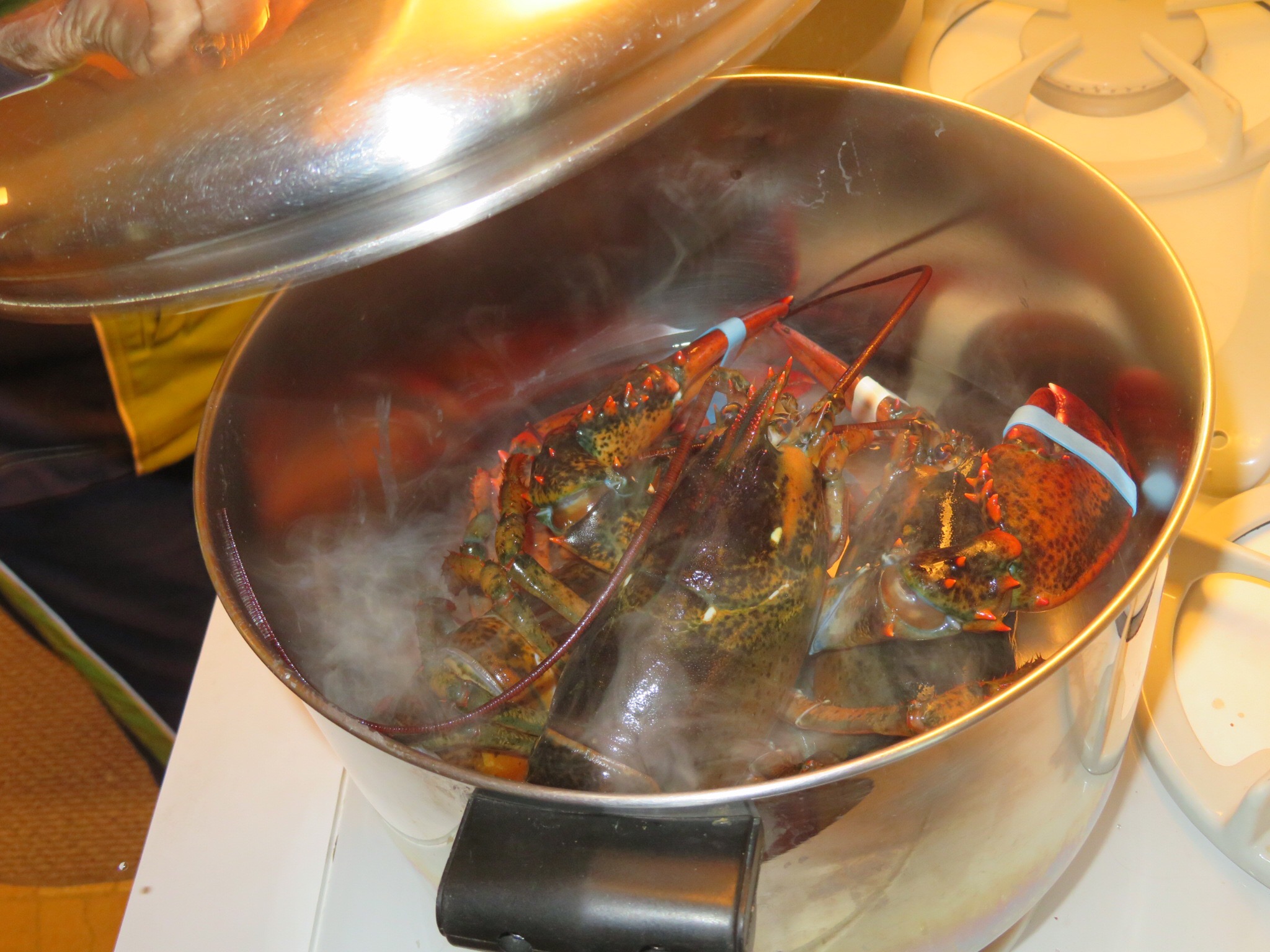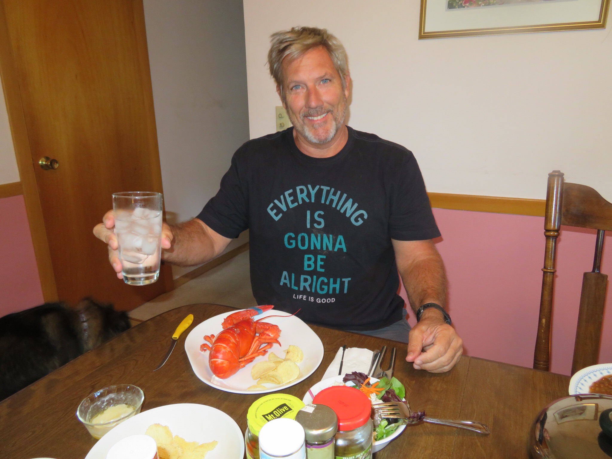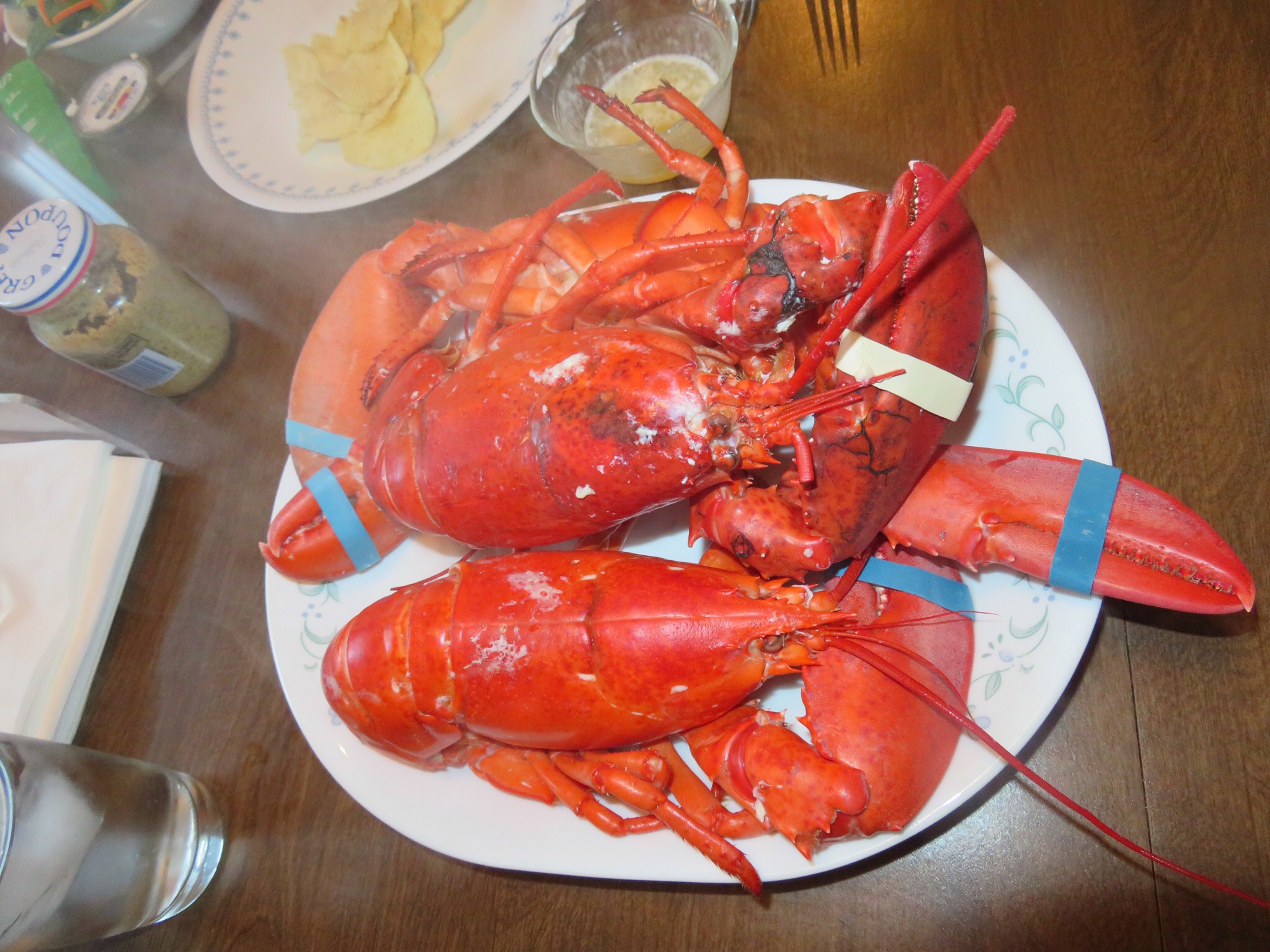 No visit to Rhode Island is complete without a few key culinary items – quahogs, clam cakes, chowder and most importantly, the tasty local lobsters. Pete had gone down to the local seafood distributor and picked up a trio of live Maine lobsters for our dinner tonight. Pete himself is not too keen on the salt water bugs, so he had the last of the ham while the ladies and I savoured the hot buttered goodness of the fresher than fresh crustaceans. Carole cooked them to perfection and we served them up with salad and chips. An epicurean delight.