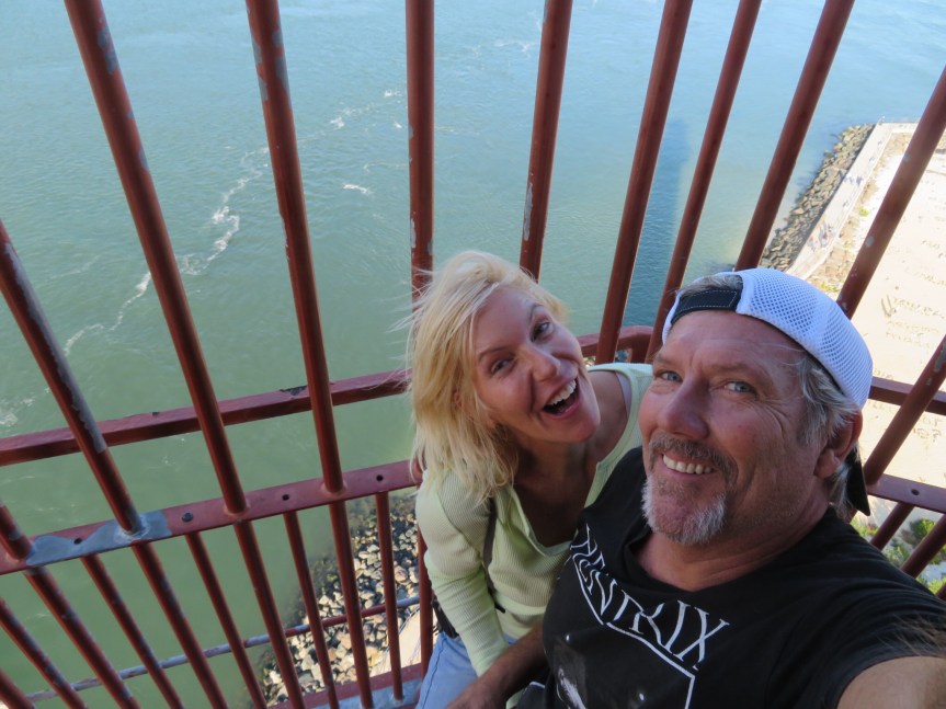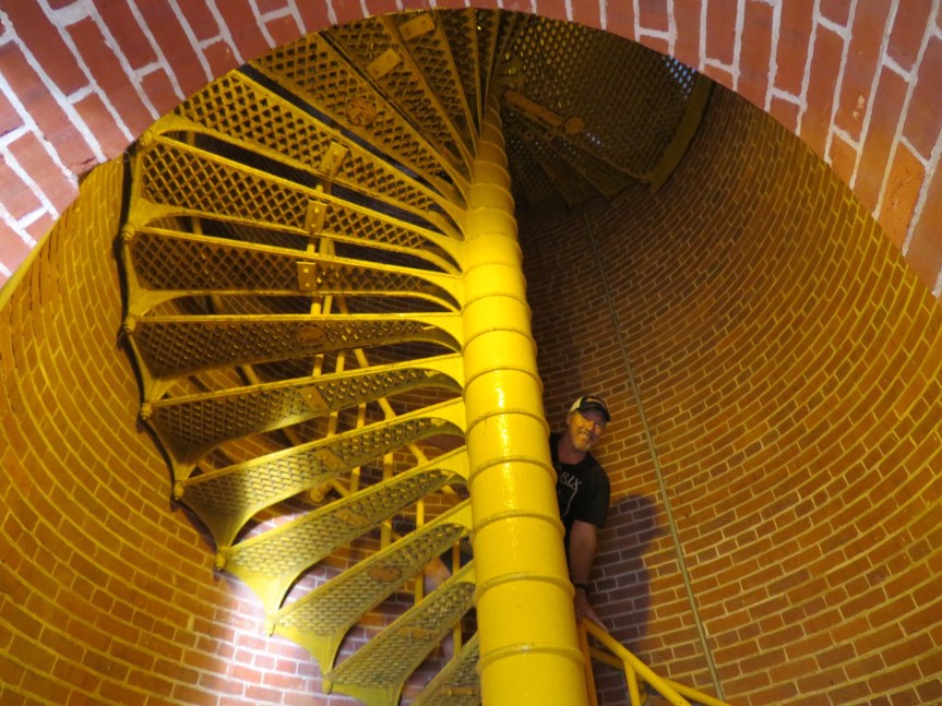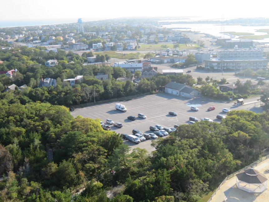 We took the dogs along to explore the beach in front of the light house. You are able to climb to the top of the lighthouse on the spiral stairs inside. We put the pooches back in the RV then ascended the 217 steps to the very top of the circular building. Amazing views in every direction, bayside, Atlantic side and down the narrow barrier island that we are on. We were the last visitors up, so on the request of the ranger, we closed the little red door that opened to the catwalk behind us before going back down.
