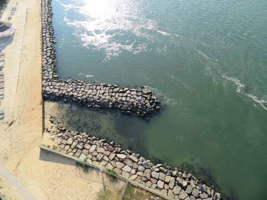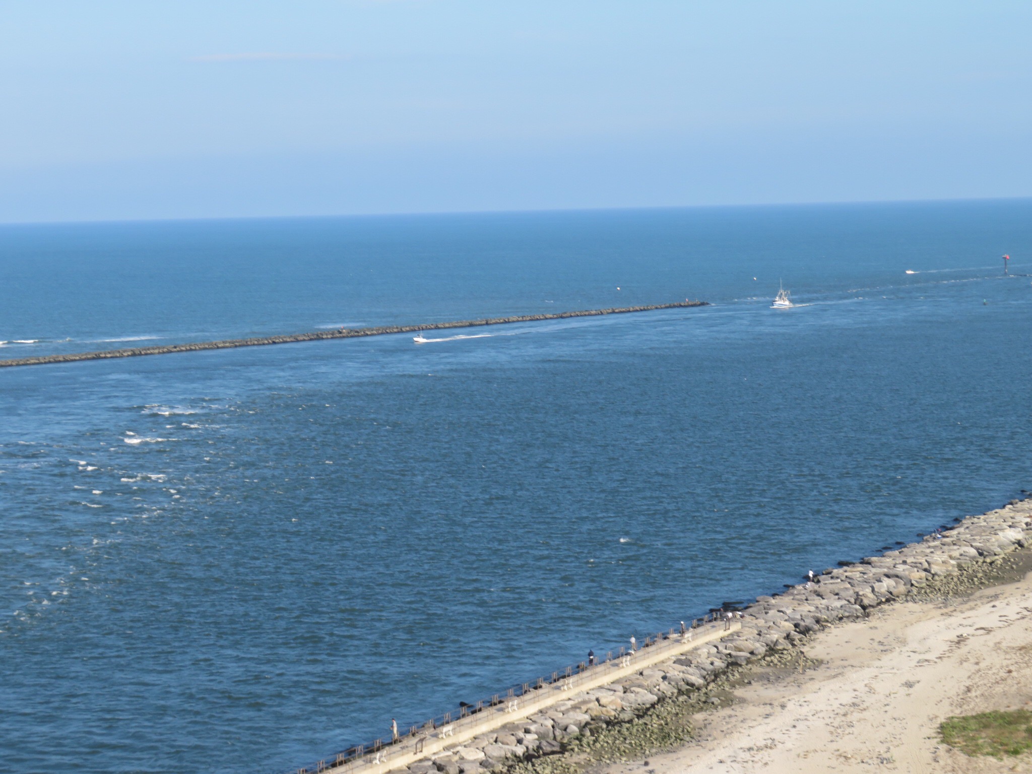 Out on the jetty, we walked along the concrete walkway that ran the length of it checking out fisherman, families and other tourists like ourselves. Boats of every description were plying the waters at the entrance to the bay; tugboats, commercial fishing boats, sailboats and pleasure cruisers. The afternoon had turned out sunny and calm and people were making the most of it.
