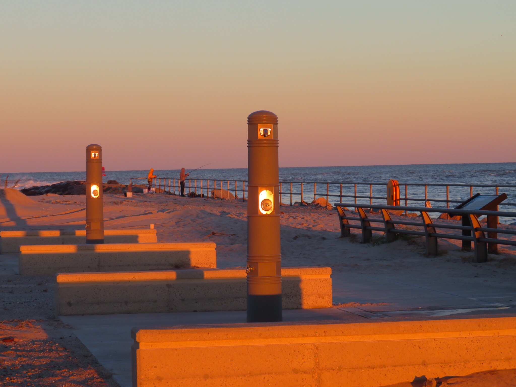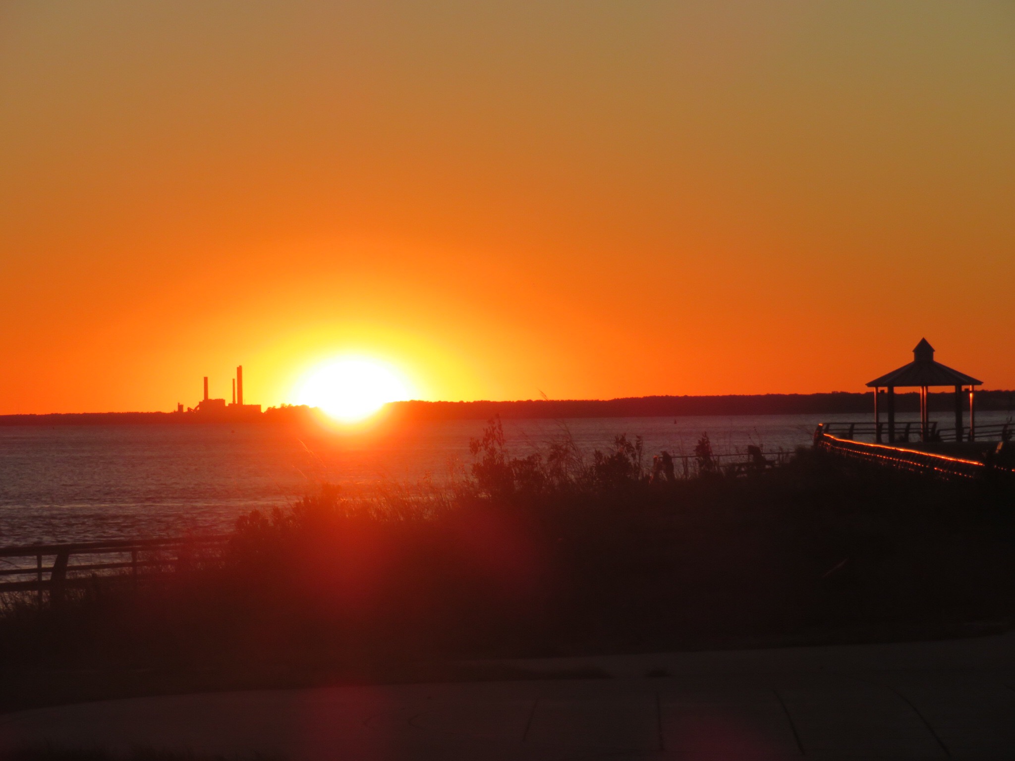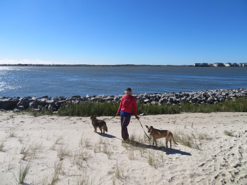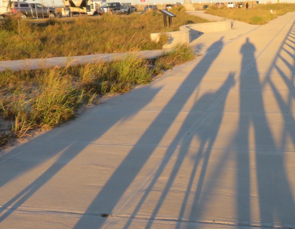 We went for a long walk behind the campground and down to the marina. As we were passing the Coast Guard station, a bookish looking fellow pointed out a yellow crowned heron situated in a juniper tree along the wetlands. I took a few photos and removed my sunglasses and hung them from my collar to better see the viewfinder. Immediately after, we crossed the street and walked down to a small sandy cove where a lone fisherman was casting his line. PJ wanted a picture, so I walked a few feet down on the sand and gave her a smile. We were just a few steps out on the sidewalk leaving when I realized my sunglasses were no longer with me. We retraced out steps and the fisherman was walking around the beach area and there were no sunglasses to be seen. Pam asked him if he’d seen them and he warily said he hadn’t. We searched a bit more in vain and then realized there was nothing we could do.