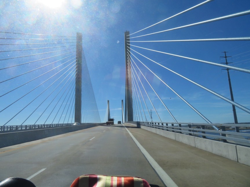By 11:00 o’clock, we were packed up and getting a new perspective on the Indian River bridge, this time going over it. Looked back on the camp from above and drove through Delaware and into the fine state of Maryland.