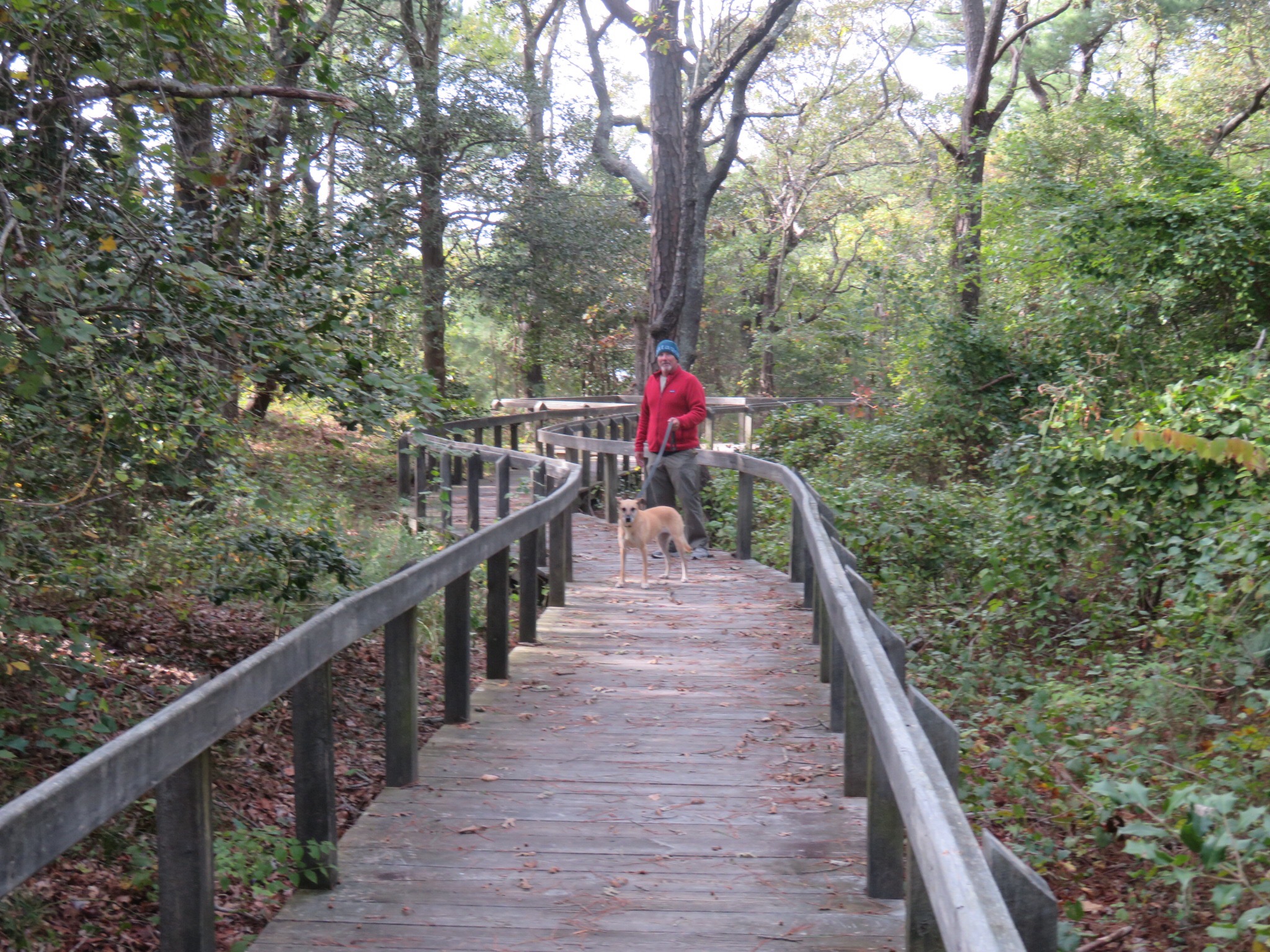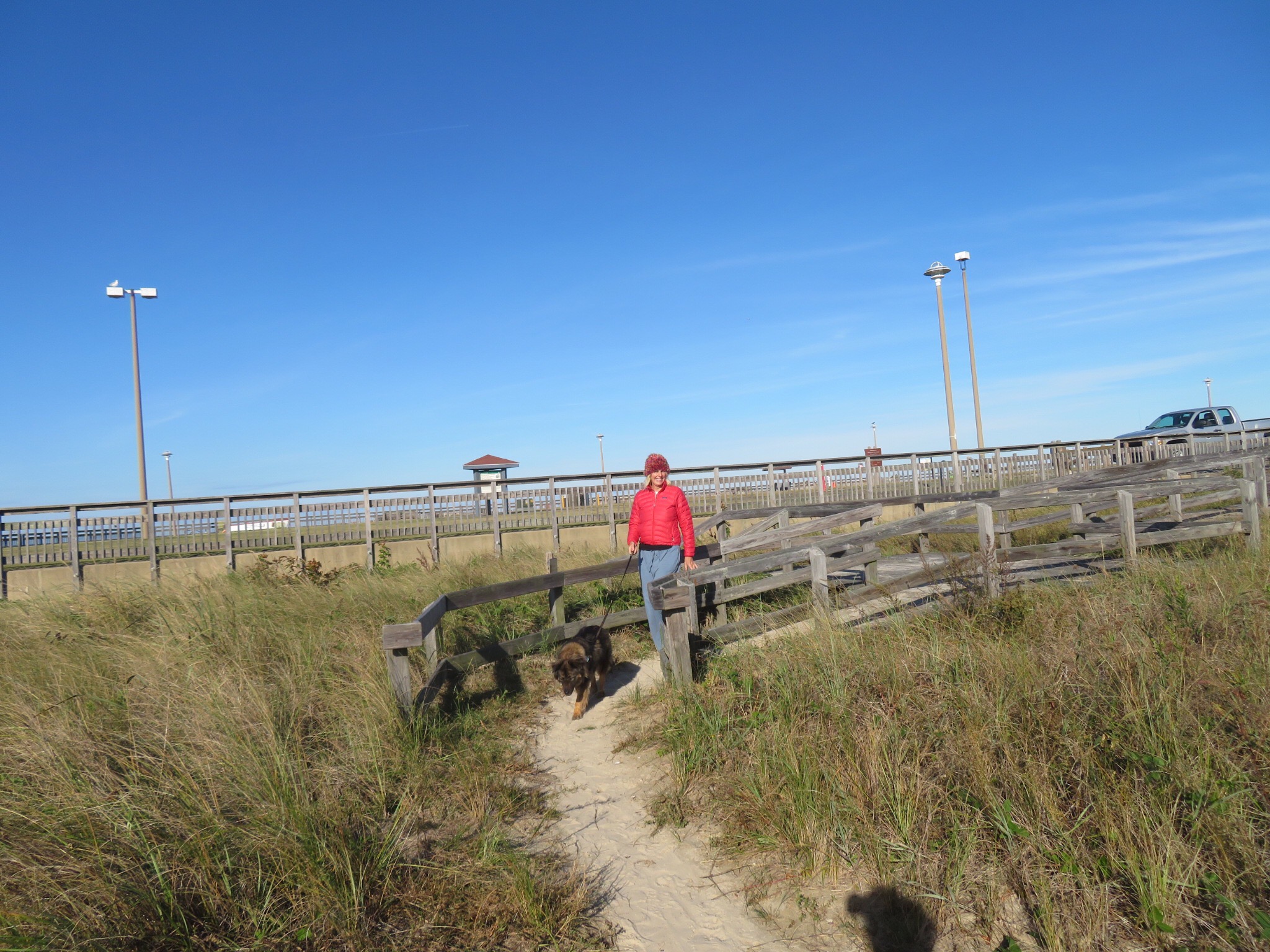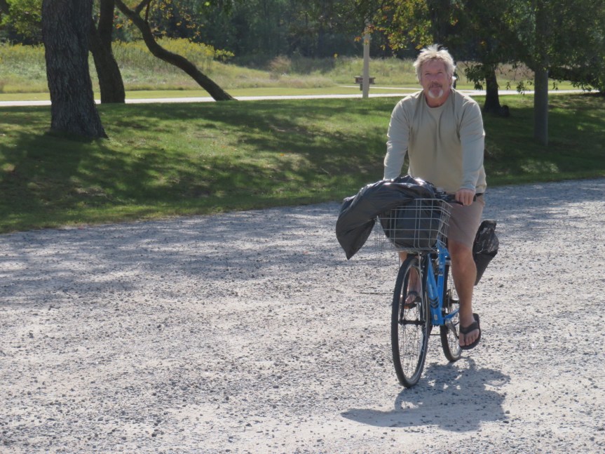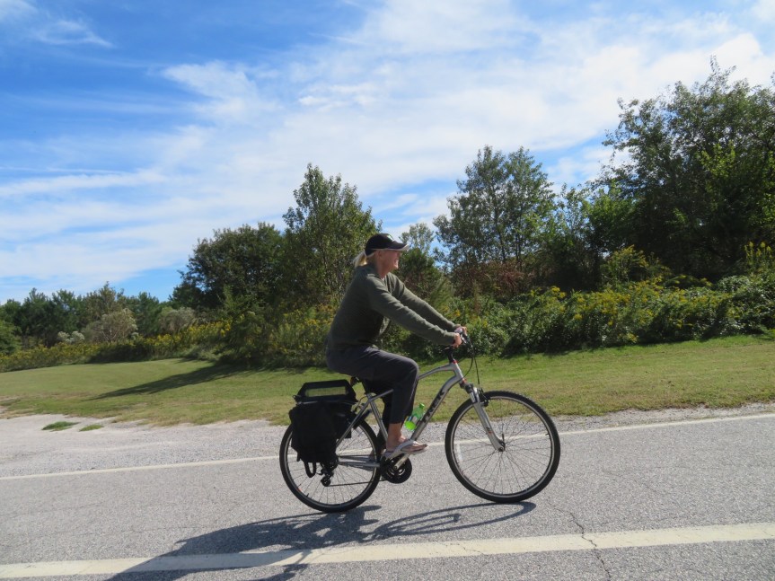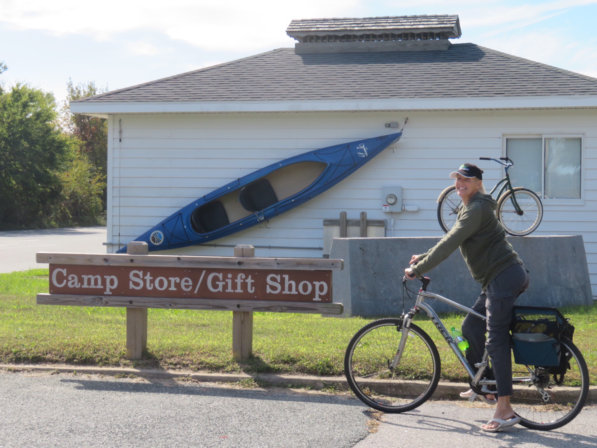 Unlike other campgrounds we’ve stayed at that try to give you the bums rush with check out times like 11:00 o’clock, Kiptopeke gives you a more civilized hour of 3:00 to leisurely get your act together and mosey along. Or in our case, to get to the office and extend our stay for another night. We rode our bikes up to the office hauling along our bag of trash to toss in the dumpsters by the camp entrance.