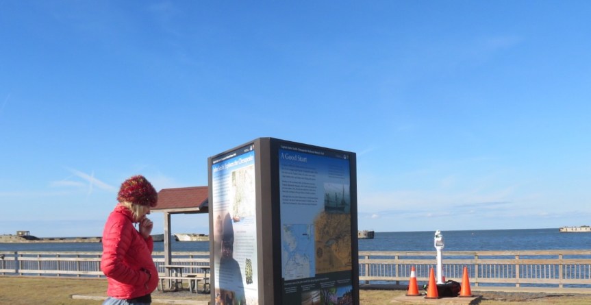 The morning began with a walk over to the picnic area to have a look at the butterfly garden. It is late in the season and I’m afraid most of the butterflies have moved on. We did see a few down at the beach later on though. We continued down to the boat launch and admired the view and studied up on the little historical markers that they have scattered about the park. This dock is where the ferries used to disembark before the bridge/tunnel was completed in 1964. After that, the ferries quickly faded from the scene.