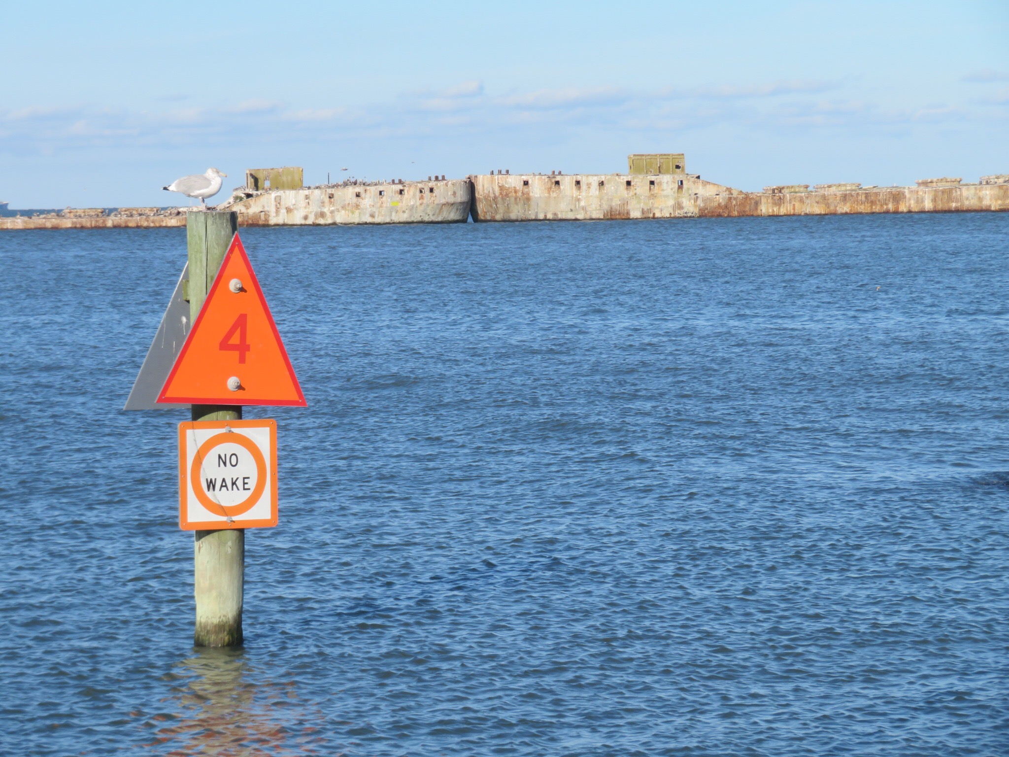 In 1948, nine concrete ships from the Second World War were sunk across Kiptopeke beach to act as a breakwater for the pier. Each ship is 336 feet long. They now act as an artificial reef and nesting area for pelicans, seagulls and ospreys.