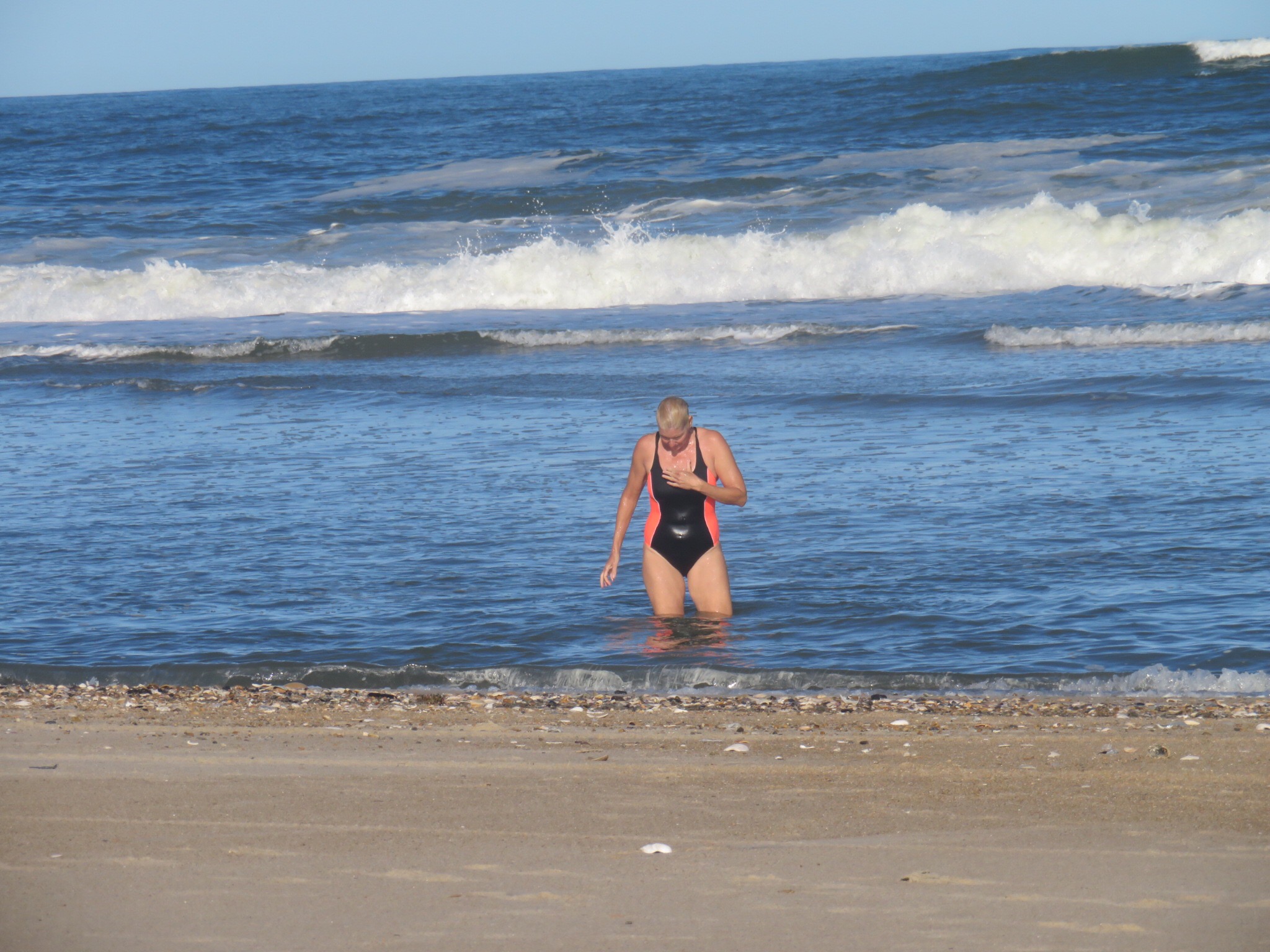 I caught a number of fun little waves dumping hard on the shallow sand bar. The drift was strong and I soon found myself down the beach a ways from where I started. Got out and walked back and sat with our crew. PJ had gotten scolded by the beach cop for having the dogs off leash while I was out there. Luckily, he was in a good mood and didn’t stick us with a citation.