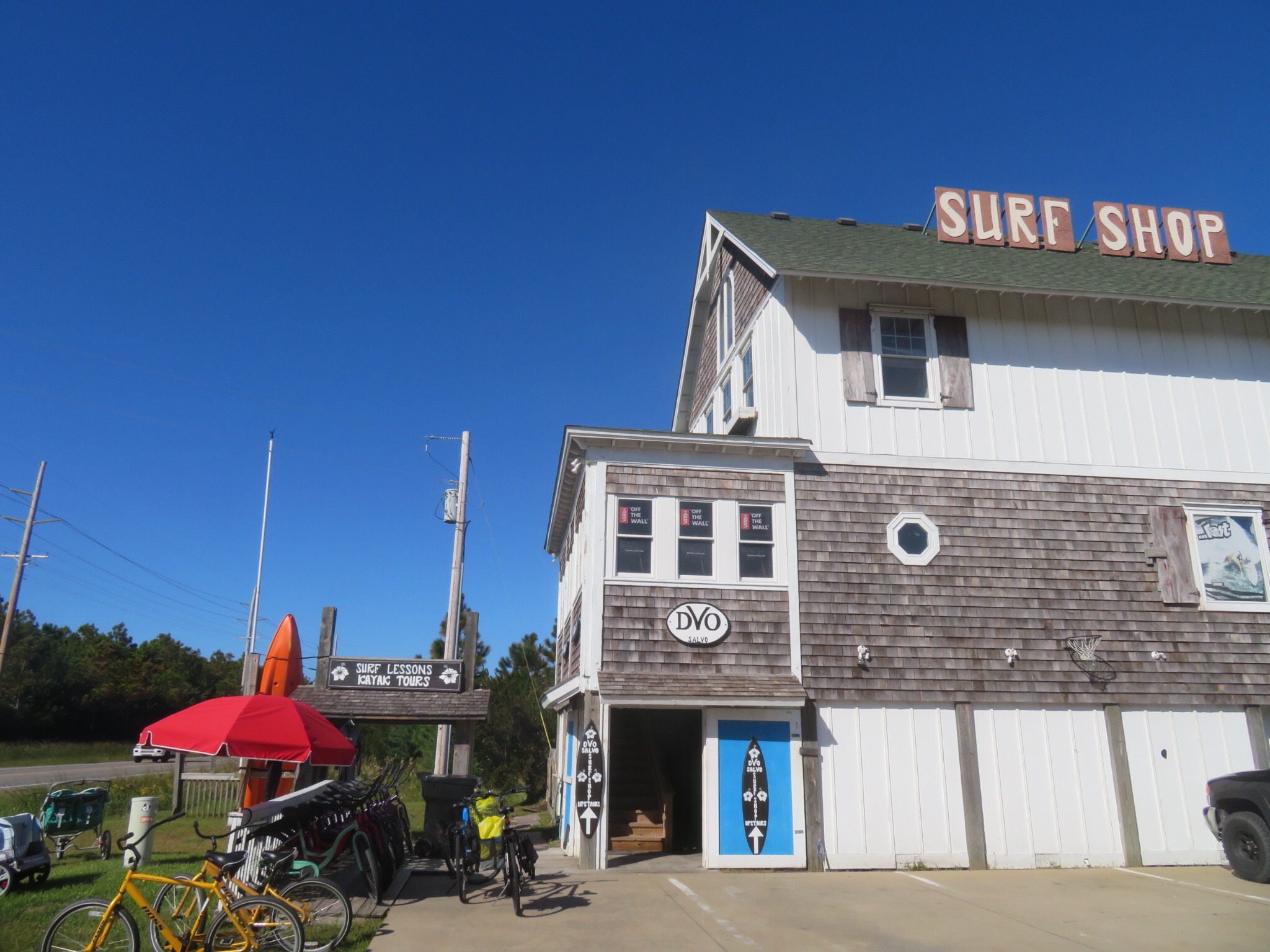 We rolled out the awning and just stayed in the moment. It was one of those days with no pressure to go anywhere or do anything. In the mid-afternoon, we pedaled our bikes a few miles down the highway to the south. Checked in a couple of surf shops to see what they had in the line of used boards to get me back in the water. Unfortunately the pickin’s were slim and we didn’t see much of interest.