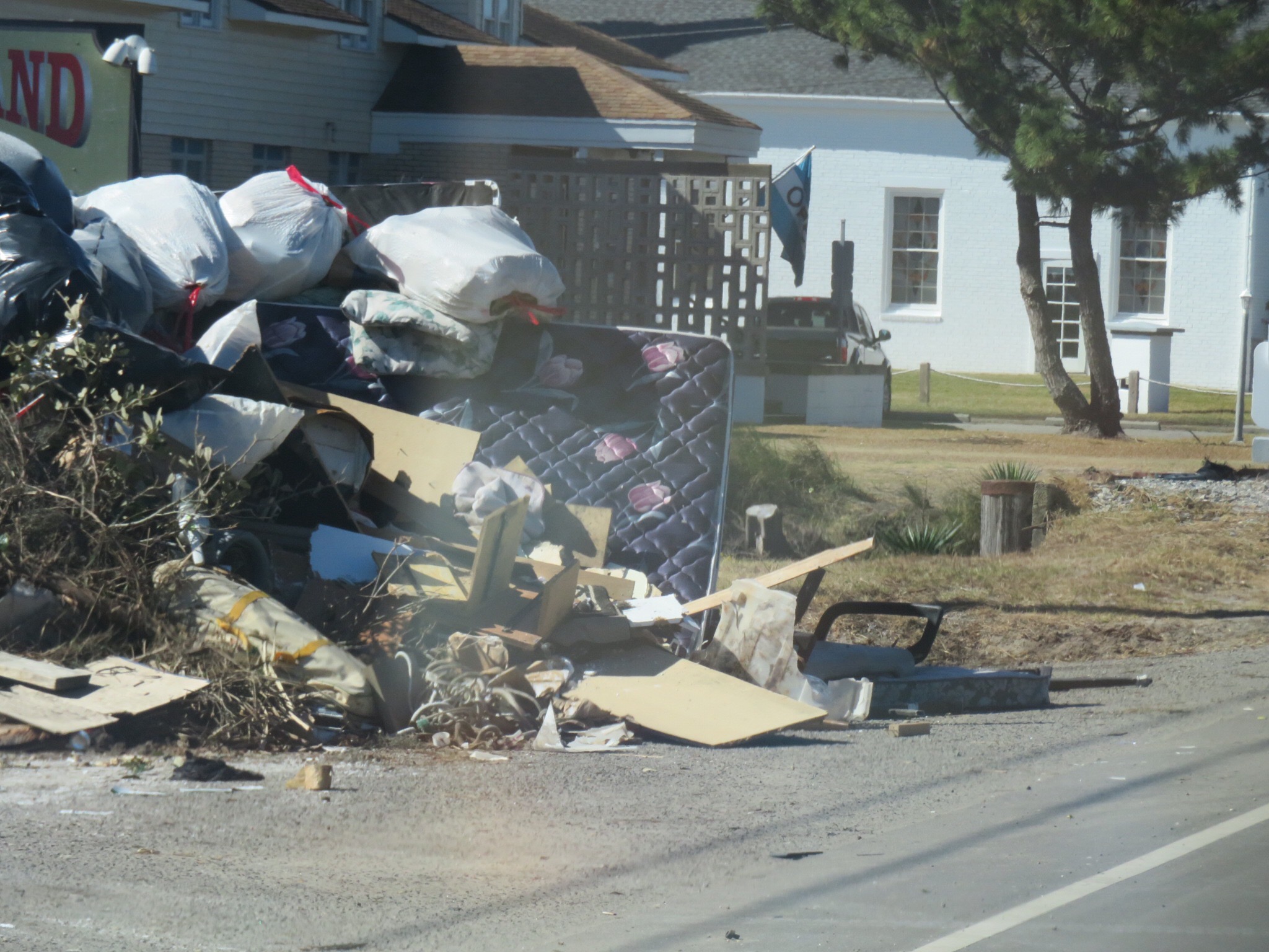 Frisco and the southern end of the island took the brunt of Hurricane Matthew’s wrath. The entire roadside was lined with piles of rubbish that used to be people’s home furnishings and belongings. Lots of appliances, mattresses and couches. You name it, it got ruined. Cars, bikes, lawn mowers. I even saw two separate mobie style electric wheel chair things that were discarded. People were out doing rebuilding projects and just generally trying to put their lives back together. Our prayers go out for them.