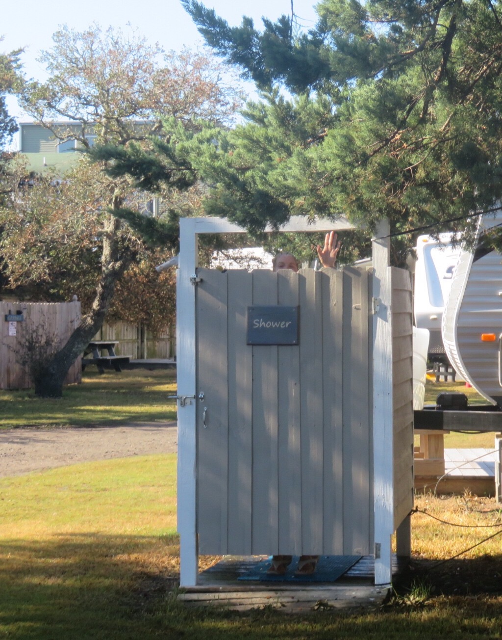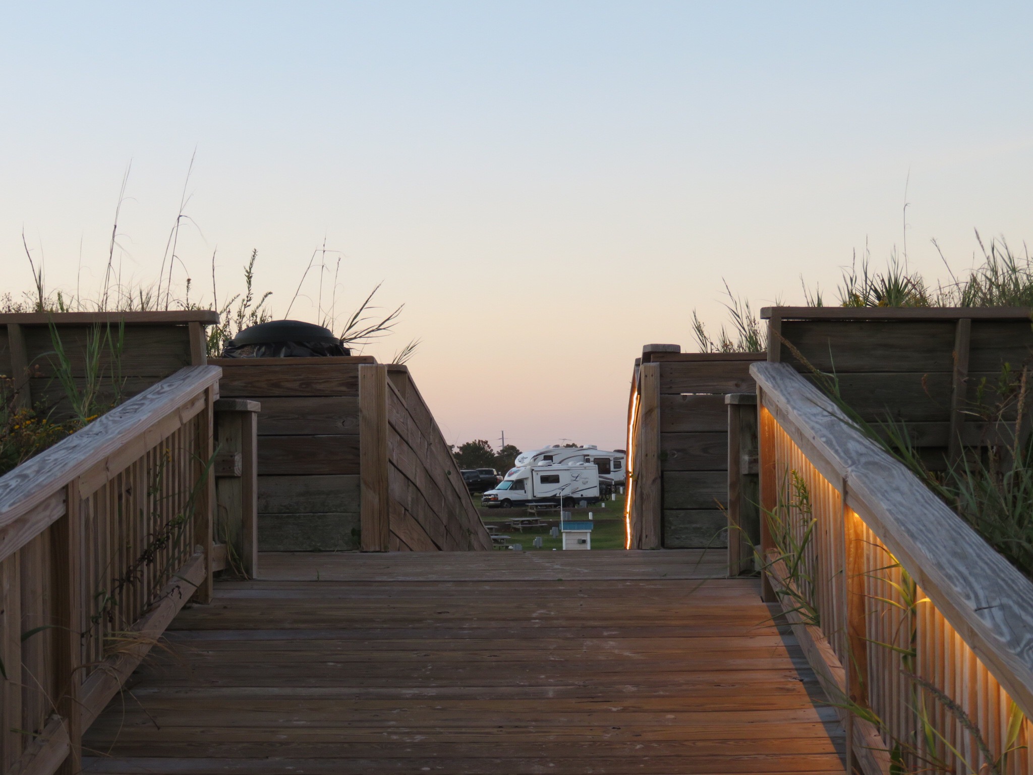 We looked at a couple of small campgrounds close to where the ferry landed but weren’t too impressed. One was downright spooky, so we powered on to Emerald Isle where two of the three campgrounds were already closed for the winter. We got a nice spot in a resort style place on the beach and got ourselves set up.