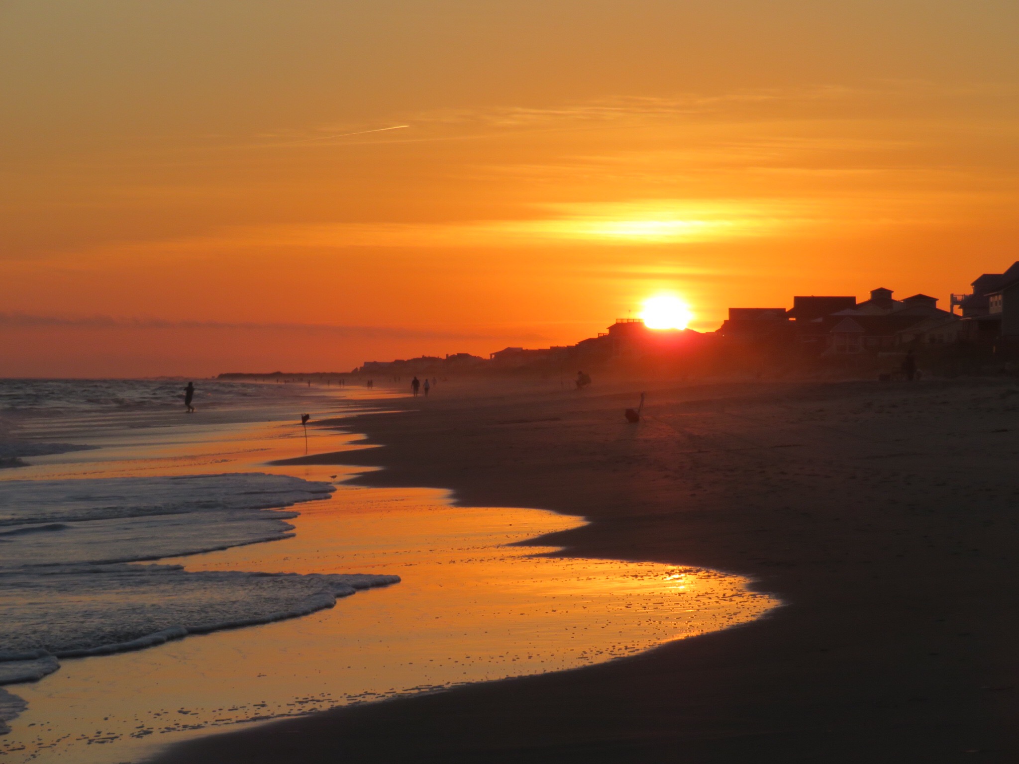 Super amazing sunset. Sorry to keep posting the sunrise and sunset shots, but just when I think I’ve seen the best another one comes along to top it. Here, we are facing dead south, so the sun doesn’t set directly over the water, rather down the beach to the side. Creates awesome reflections on the shoreline where the golden sun bounces off the receding waves.