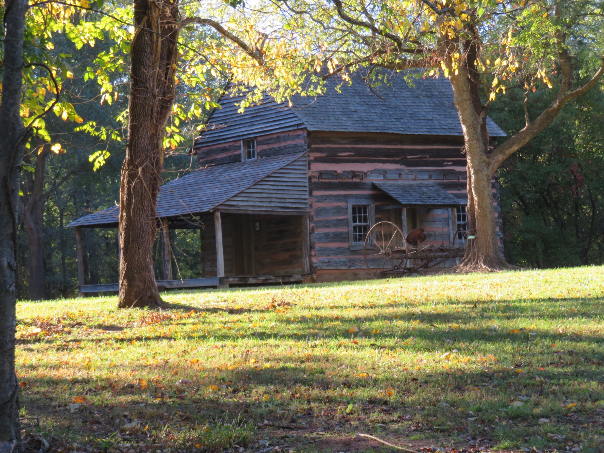 We arrived at Pamela’s cousin’s home in Fort Mill at around 4:00 in the afternoon. Laura gave us a tour of their beautiful home then we all climbed into the RV and headed over to Ann Springs Greenway, a large park with hiking trails where we went for a long walk. There were a number of horses and donkeys in meadows along the path. Along the creek bottom we crossed a swinging bridge then hiked up a trail that brought us out of the trees at the cabin that Billy Graham’s grandfather built. The shadows grew long and bathed the park in that wonderful lighting that evening brings as we returned to the parking lot. Both ladies were lost in conversation and the magic of being together in this beautiful setting.