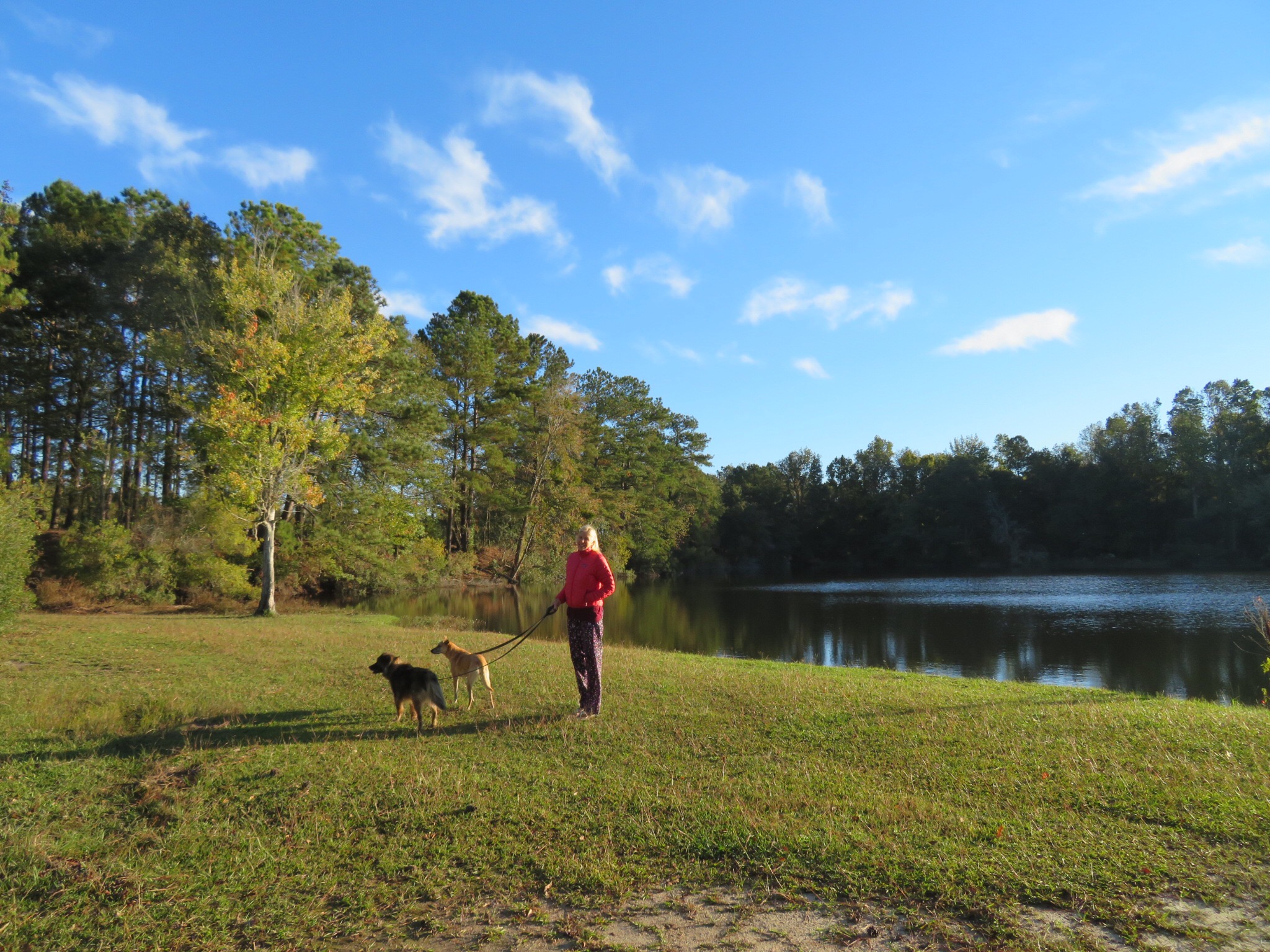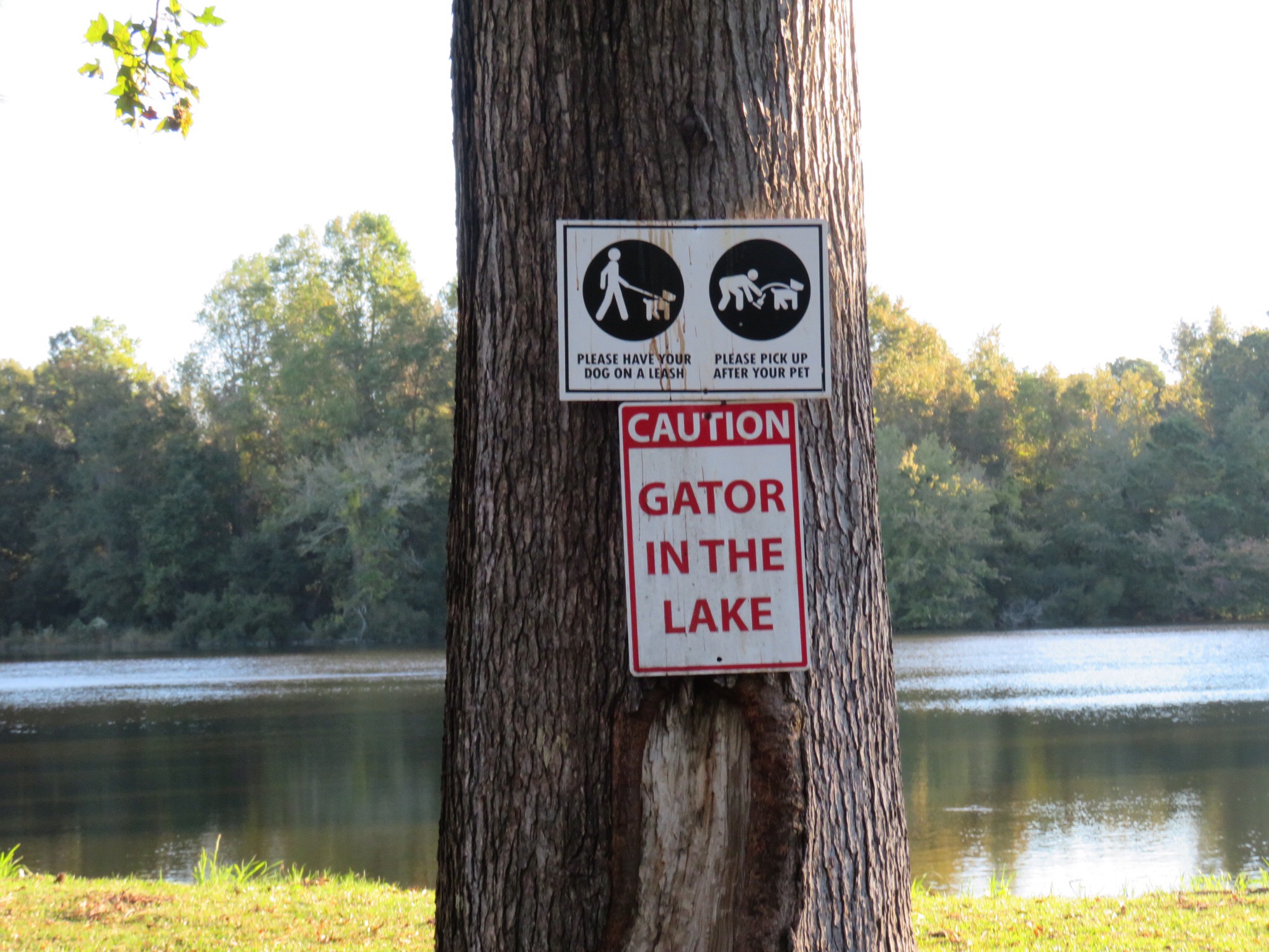 The morning had a little chill to it as we took a walk around the campground to see what Bass Lake had to offer. Contrary to the sign by the lake we didn’t see any gators but I did see PJ picking up after some dogs.