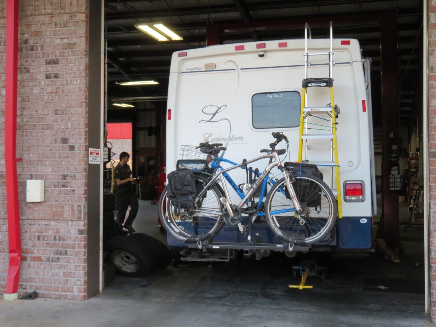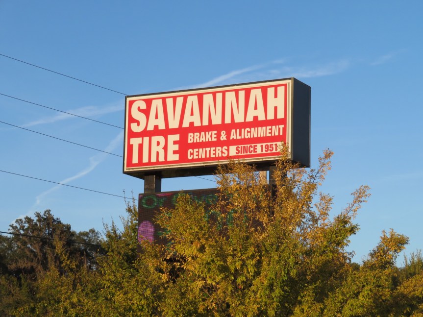 After arranging our reservations with the young gal in the front office, I had a little breakfast while calling mobile RV repair guys and hunting down a new tire for the motorhome. Savannah Tire is this area’s answer to Discount Tire back home. The gentleman on the phone looked up my tire and assured me it would delivered to the shop and ready to install by noon. We disconnected everything and rolled in the slide out and I took it over to them at 1:00pm. They had ordered the wrong tire, one a few sizes too big. After checking with their supplier, they told me to come back later in the afternoon and they could get it hooked up.