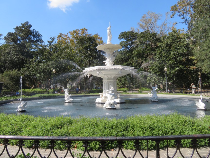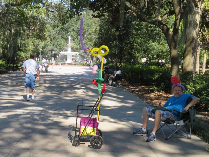 Lots of interesting statues, colorful characters and beautiful old trees. Unfortunately some didn’t survive the hurricane and were being chopped up and removed. Savannah is set up with squares, small parks, every few blocks. Some are more ornate than others but all have benches and shade where they are placed between rows of classic Victorian houses.