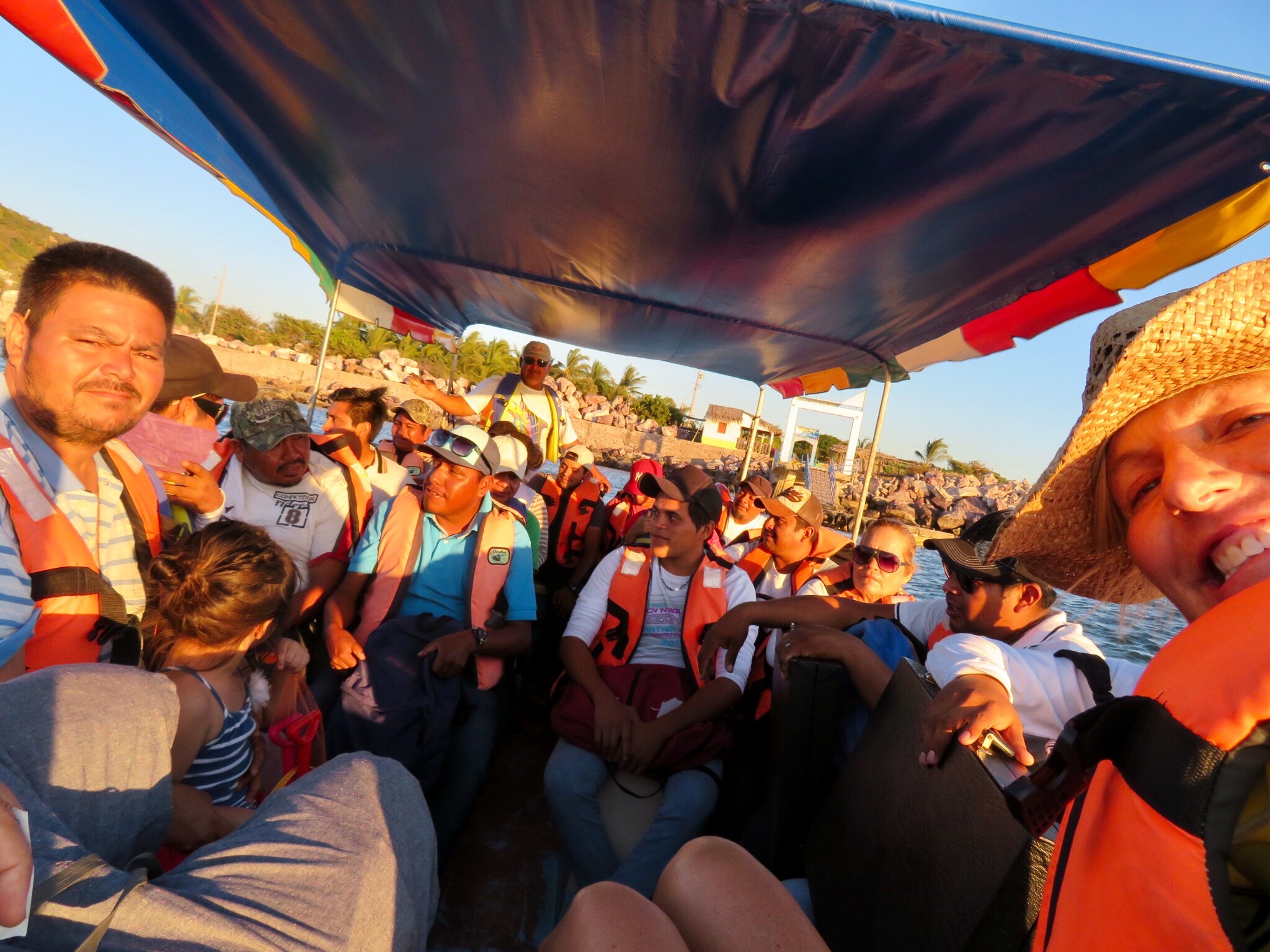 Super laid back location with a magnificent beach, but after talking it over we decided to keep heading south and really put the effort into finding a house or apartment with some yard space for the dogs. There was a large crowd waiting at the little dock and when the boat pulled up we all managed to squeeze on.