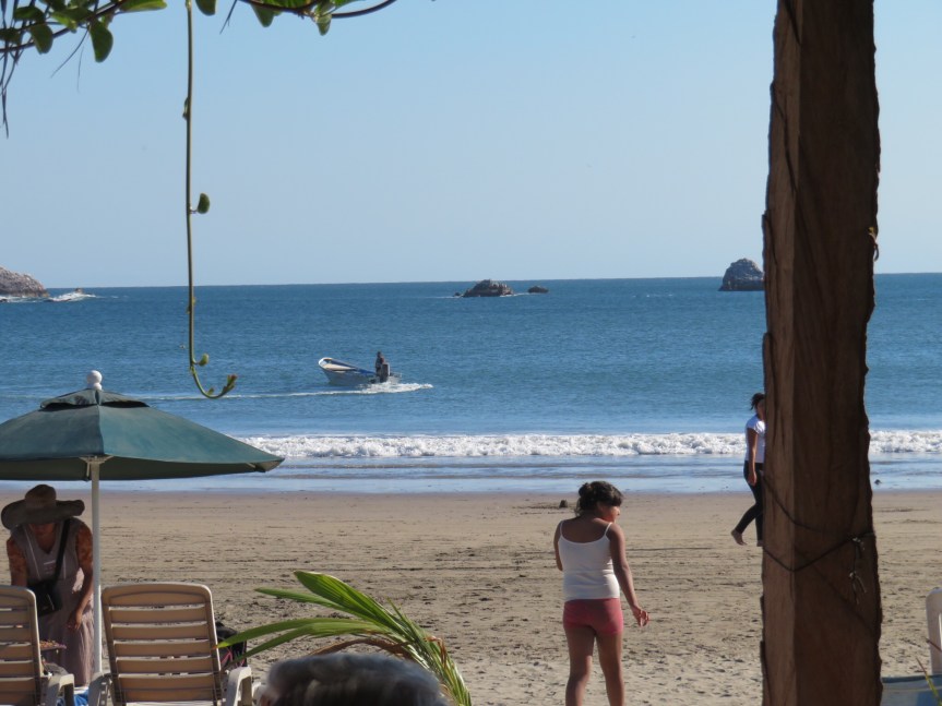 We debarked on Isla Piedra which really isn’t an island at all, it’s just hard to reach by car from the centro. We walked down the beach a ways and found a shady table at the Velador Restaurant, a palapa style restaurant on the beach. The beach is long and wide and once you are past the small cluster of restaurants and businesses, it is empty for miles on end.