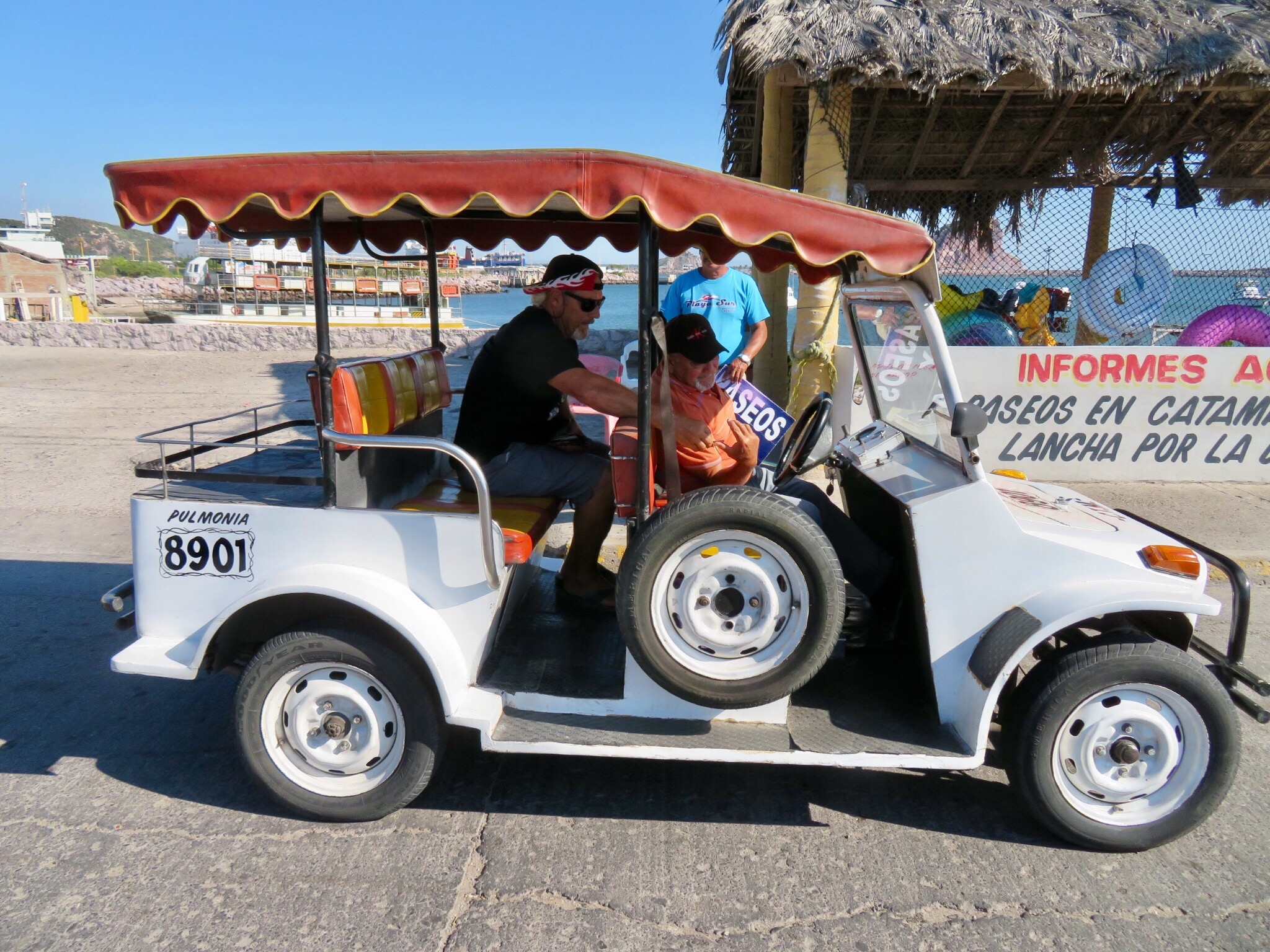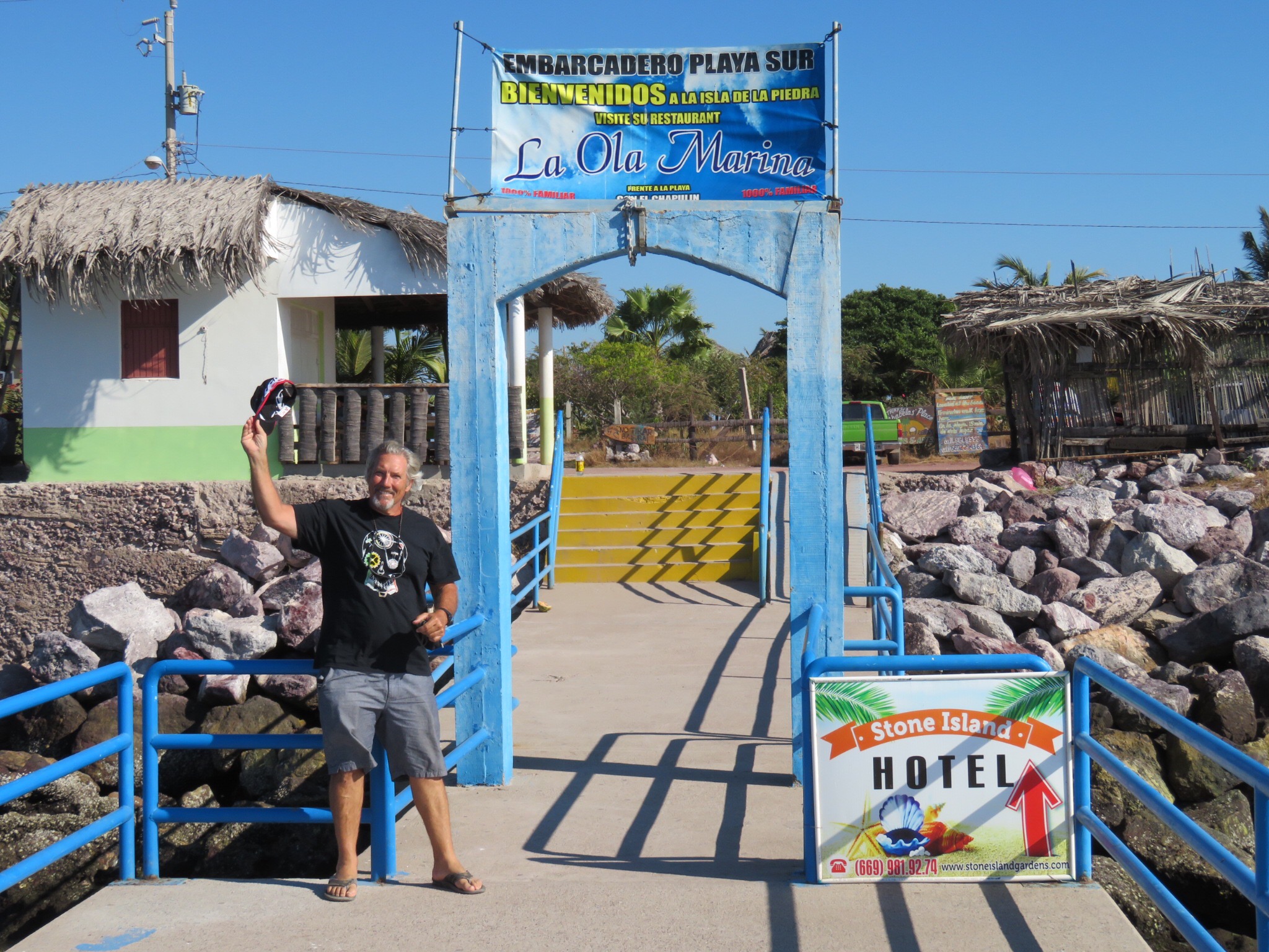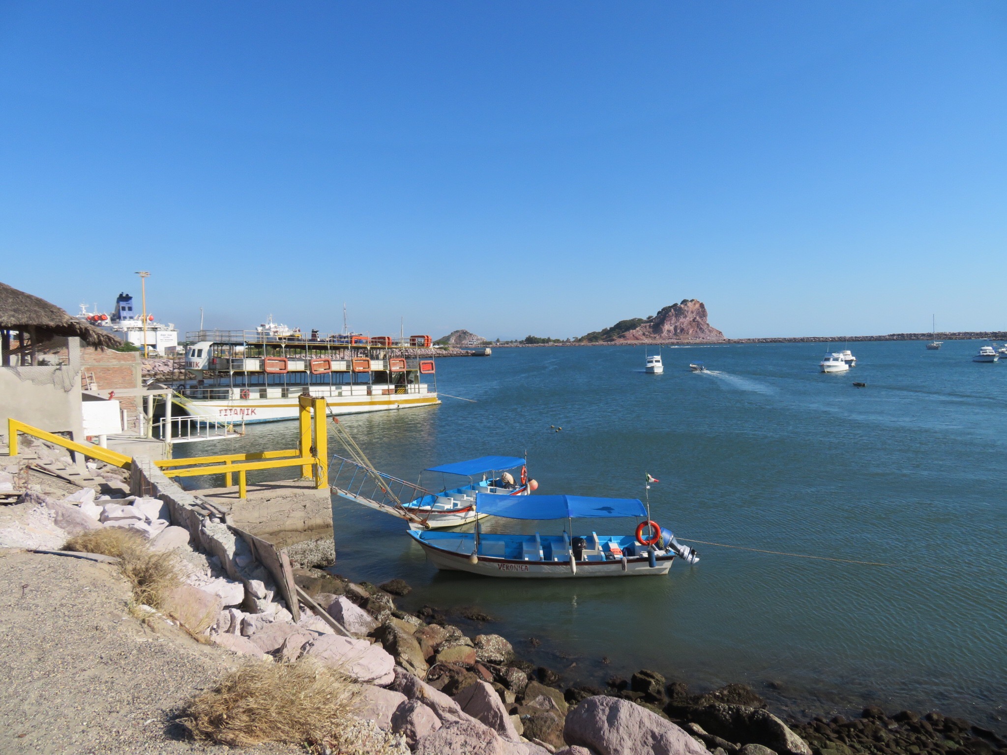 In the early afternoon, we caught a pulmonia down to the wharf where the water taxi takes you across to Stone Island. For a buck fifty each, we got round trip boat tickets to the peninsula on the other side of the harbor entrance. Our boat was empty except for us and the crossing was short and easy. Two ferries from Baja were tied up at the docks and a cruise ship sat a little further down inside the bay.