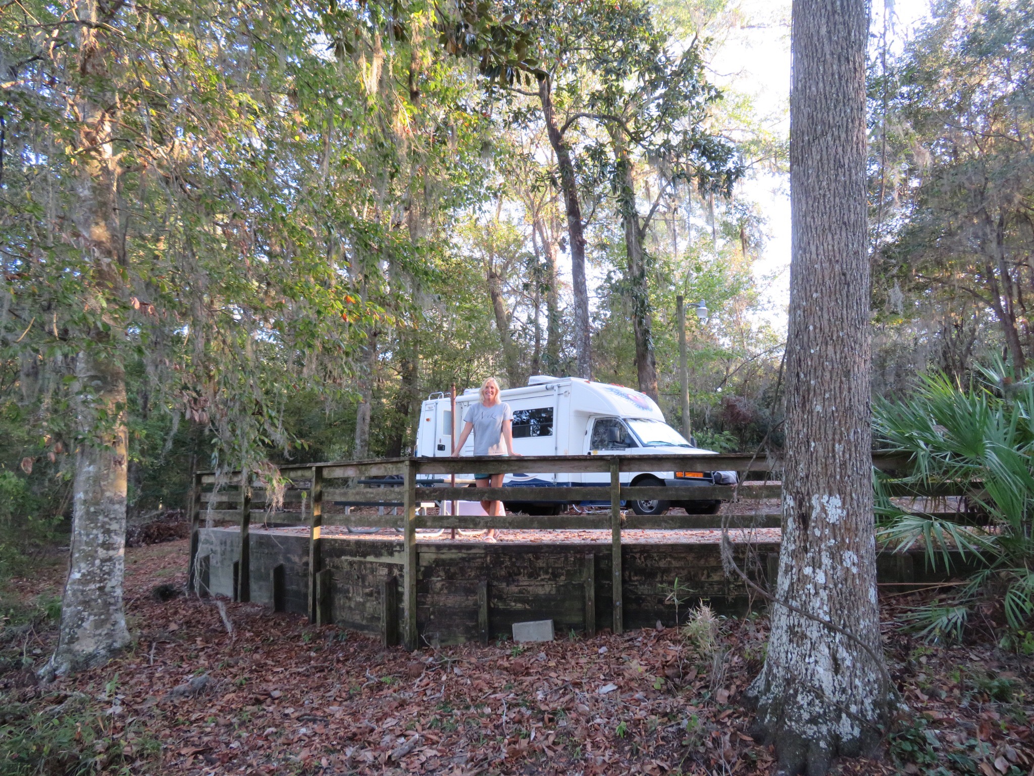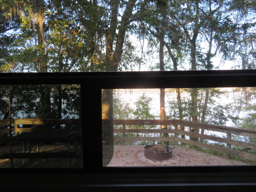 Around 5:00 we pulled into Coe Landing County Park located on the west side of Tallahassee on Talquin Lake. PJ had found it online and it turned out to be a real gem. There are only about 20 spots and there are about a half dozen that sit directly on the lake. We lucked into the lakefront spot on the far end with a small elevated deck like area with a picnic table overlooking the water.