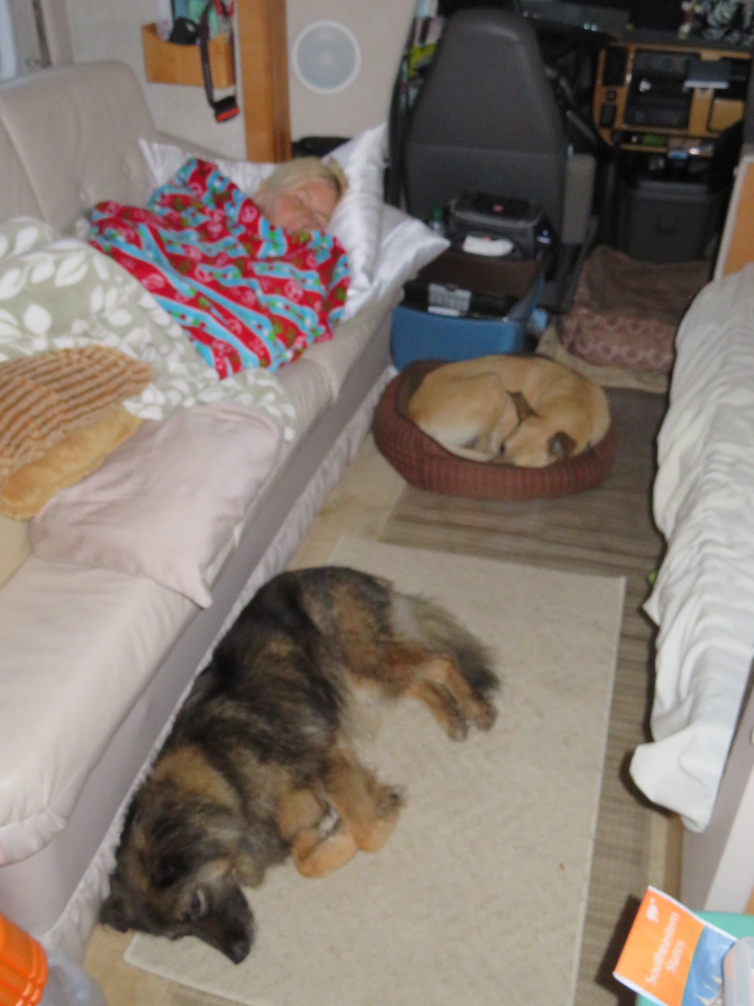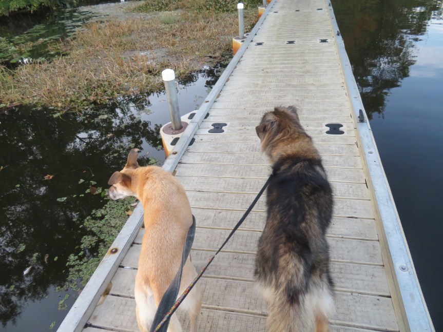 I had a cup of tea, then took the dogs for a morning stroll down to the Coe Landing public boat ramp just outside the campground. I was in a totally mellow mood, partly from lack of sleep and more so from the serene energy of our lakeside oasis.