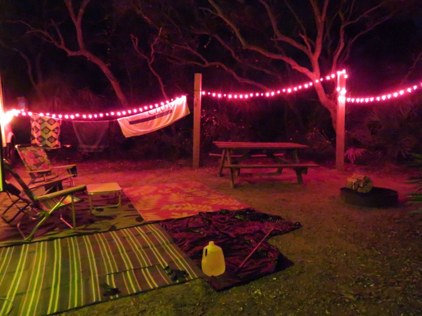 Soup, cheese and crackers were on the menu tonight. Afterwards, PJ hung her chili pepper lights around the camp site and we relaxed after a busy, but enjoyable travel day.