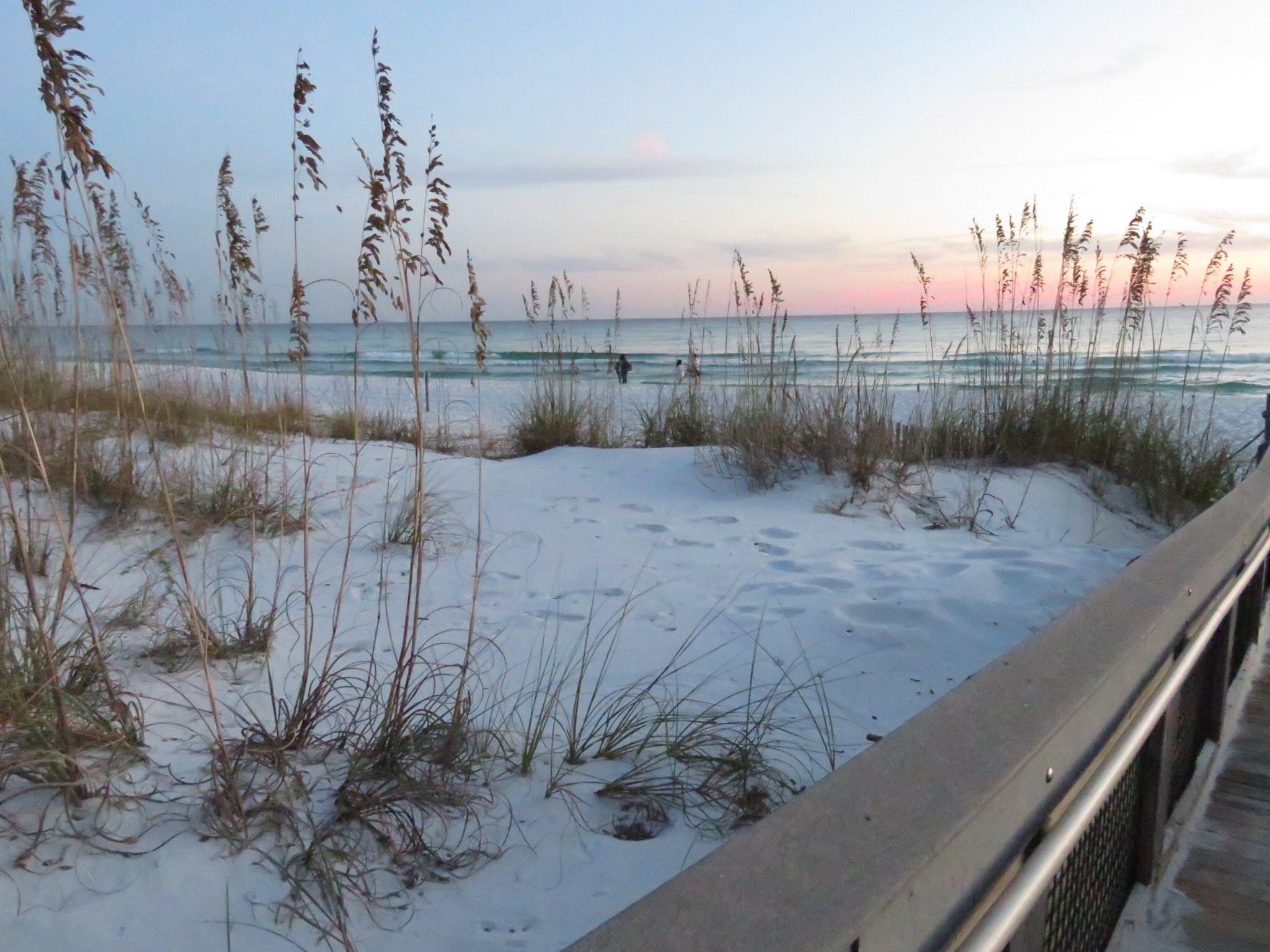 PJ went in to the beach and was taking some photos when I noticed her starting to dance around and running back toward the boardwalk. I instantly figured that there were some type of biting insects. I went in and it was little biting flies. They looked like innocent little house flies until they sank their teeth into you. Fortuitously, I had thrown a can of Off into our bag. We sprayed our feet and found an open bench and sat around as the sun was beginning to drop in the sky.