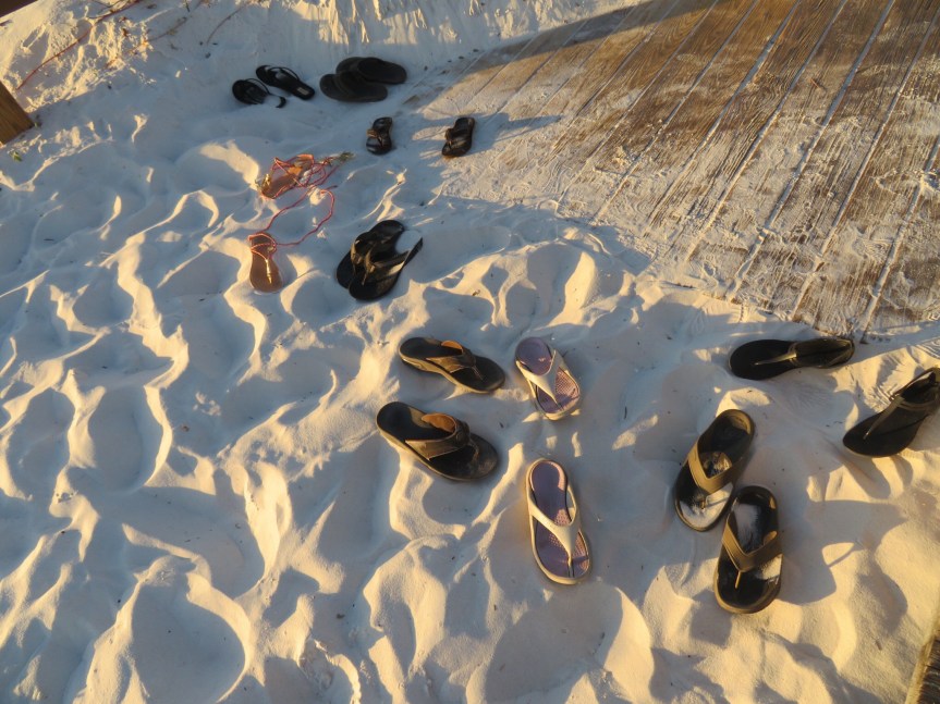 On the walk back two couples had pulled their golf cart to the side of the dunes and were having cocktails and taking photos. They were playing Christmas carols and having a joyful time. We volunteered to be the photographer so they could all be in the pictures. Their laughter followed us as we made our way in the dark back to our camp.