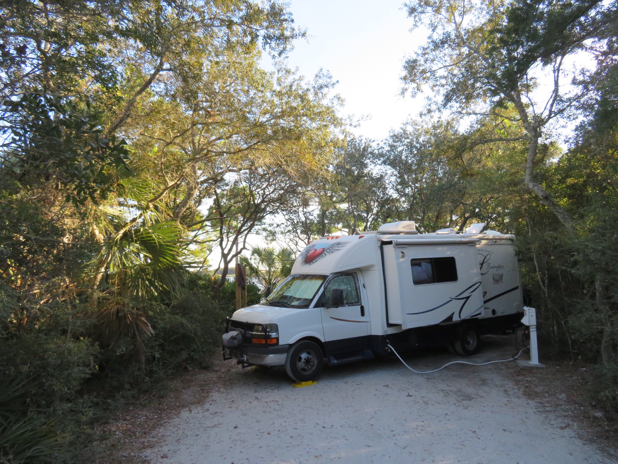 I increased the tire pressure to 72 psi and the RV seems to ride much better. We tooled along the back roads taking hwy 20, a one lane road that took us through a number of small rural outposts. We stopped for a shop at the Piggly Wiggly in Bristol. Just past Blountstown, we came upon the bike portion of the Ironman Florida race. Lexi gave a wide pass to all the tired looking cyclists bringing up the rear of the race. We were held up for a while at an intersection where the cops had traffic stopped letting the racers go by. After that, it was smooth sailing the rest of the way down to Grayton Beach.