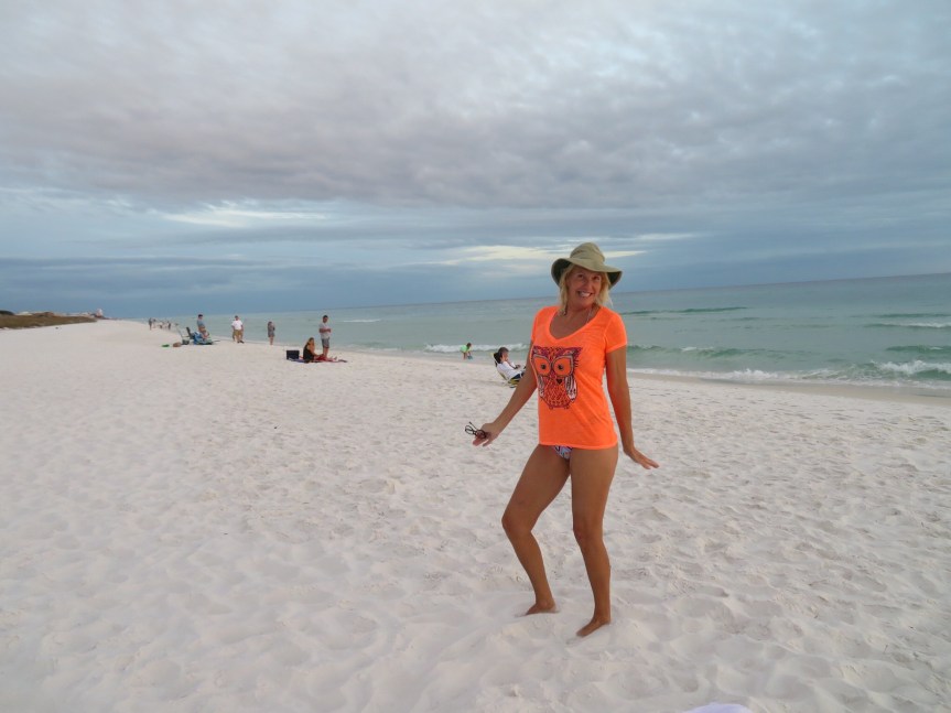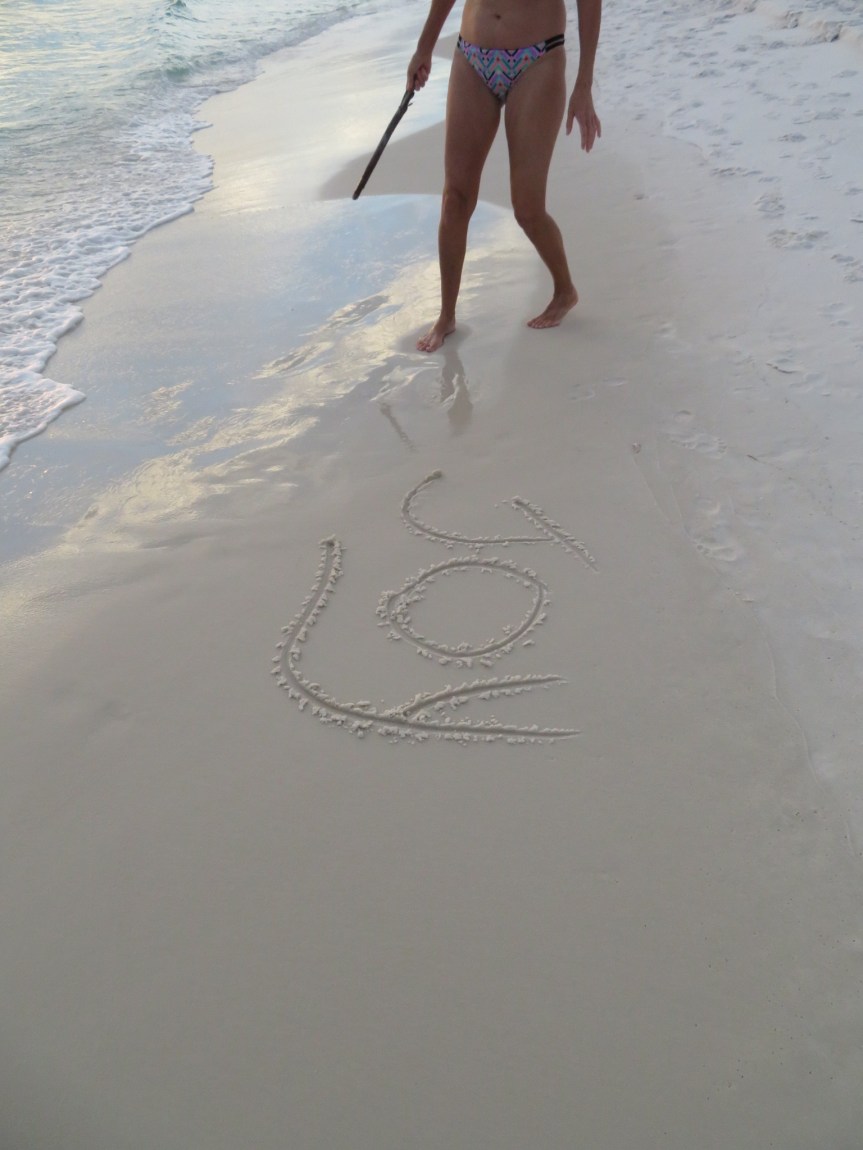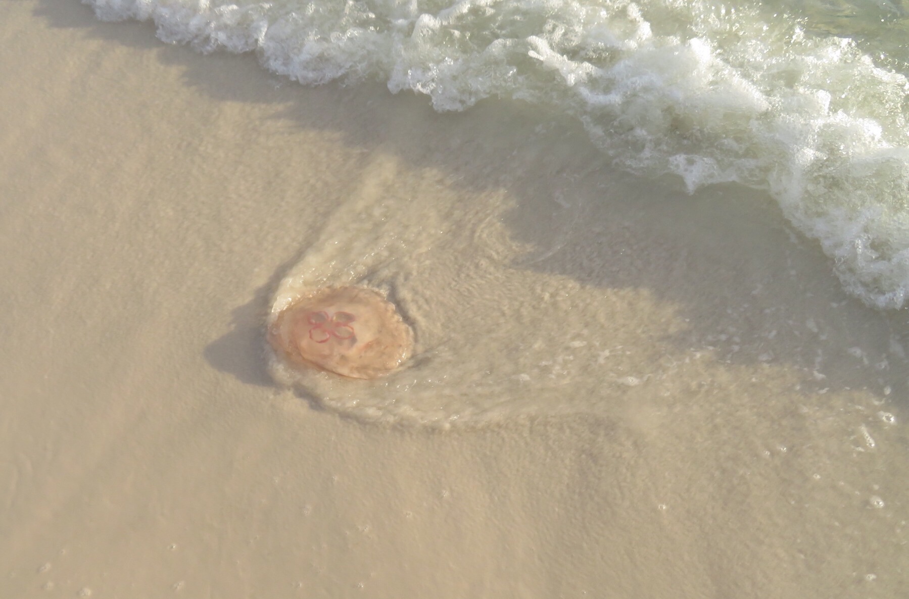 From a distance, I caught myself wondering if that was snow or is it sand the beach is so white. We figured out that the purple flag that they were flying was a warning for jellyfish. We saw quite a few day after seeing none yesterday. Luckily, the water is so clear that you can spot them at quite a distance and avoid any close encounters.