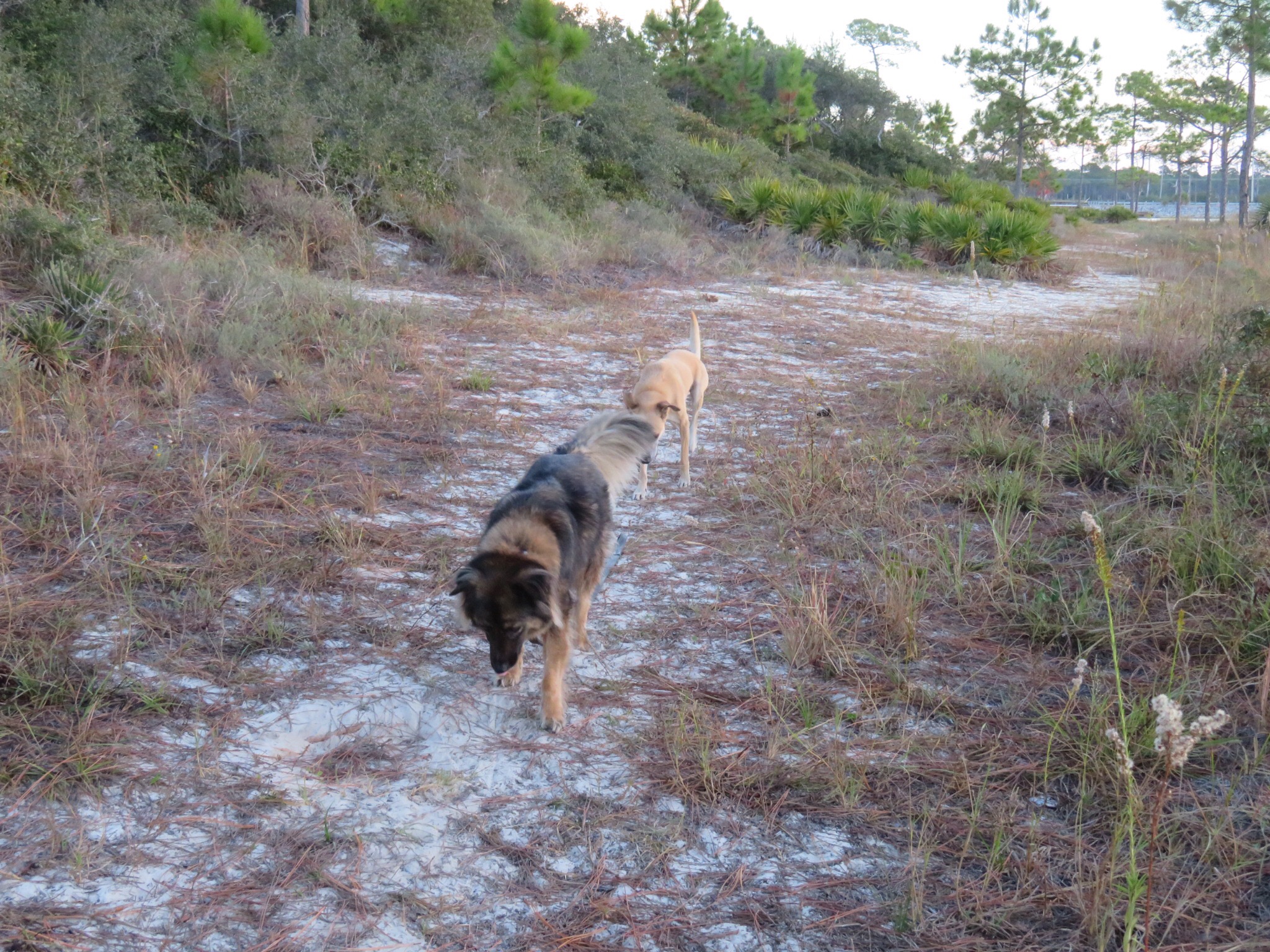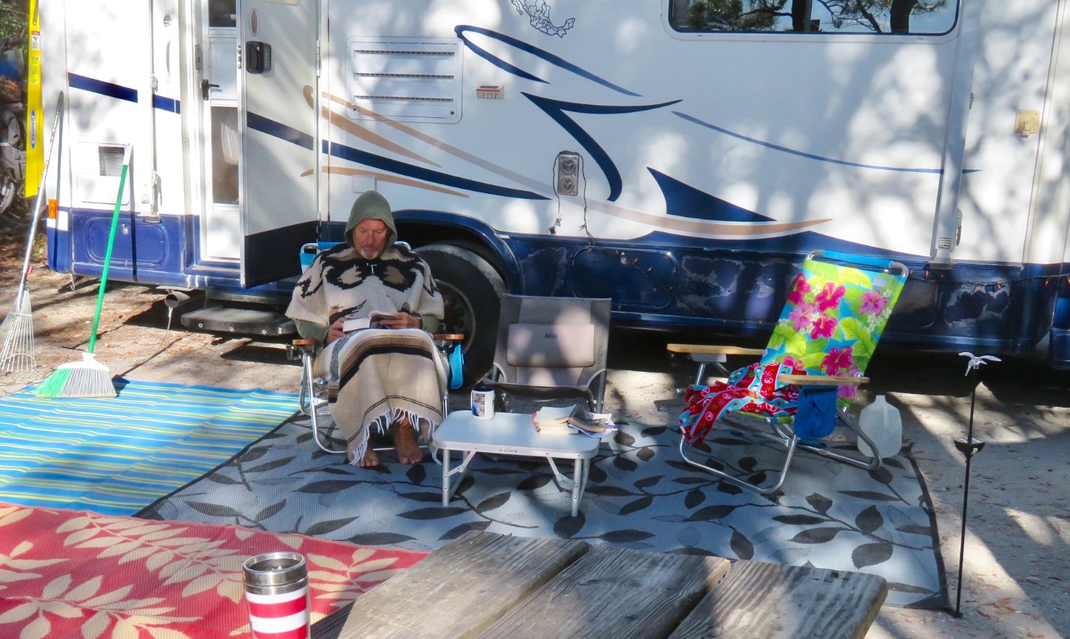 I got a fire going while PJ cooked us up some veggie burgers and hot dogs. Sat around the fire enjoying our dinner. The time change had us in the dark by 5:45. Might take some getting used to. Walked the dogs around the campground, as much to check out the new campers that have arrived as to exercise the hounds. Easy evening relaxing getting set for an early night.