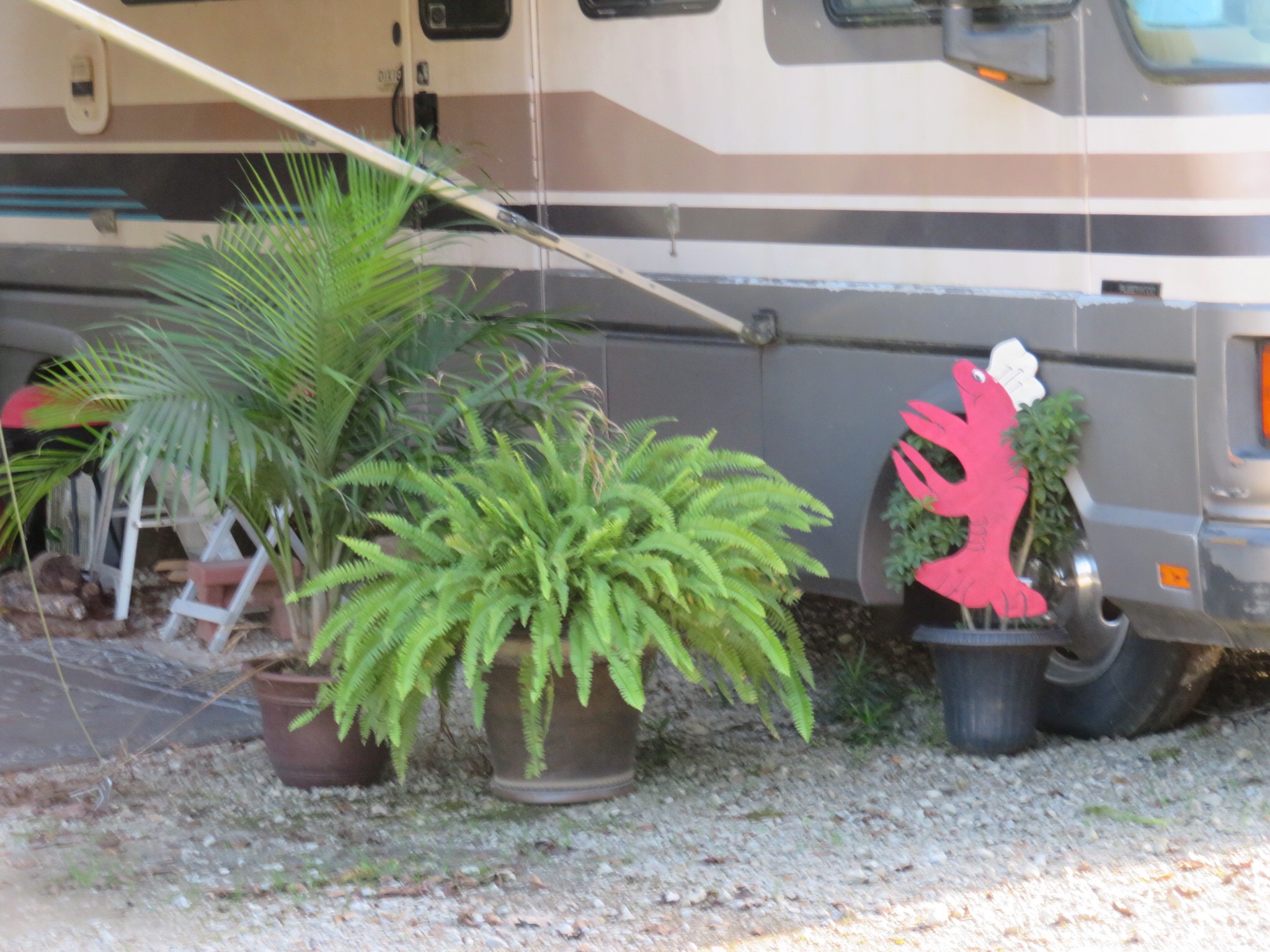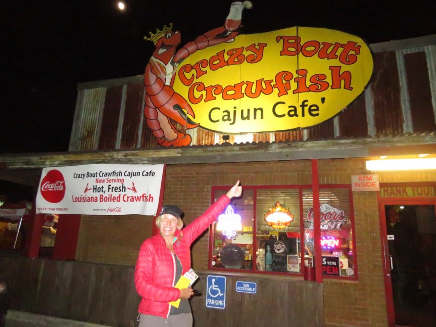 The moon was full and it lit up the potholed road as we walked back to camp. Feels good to move around and walk off our large meal. We let the dogs out and walked them all around the campground in the moonlight. We could easily spend a week exploring this part of Louisiana but Mexico is beckoning and we want to beat the main influx of Canadians and find a decent house to rent for the winter.