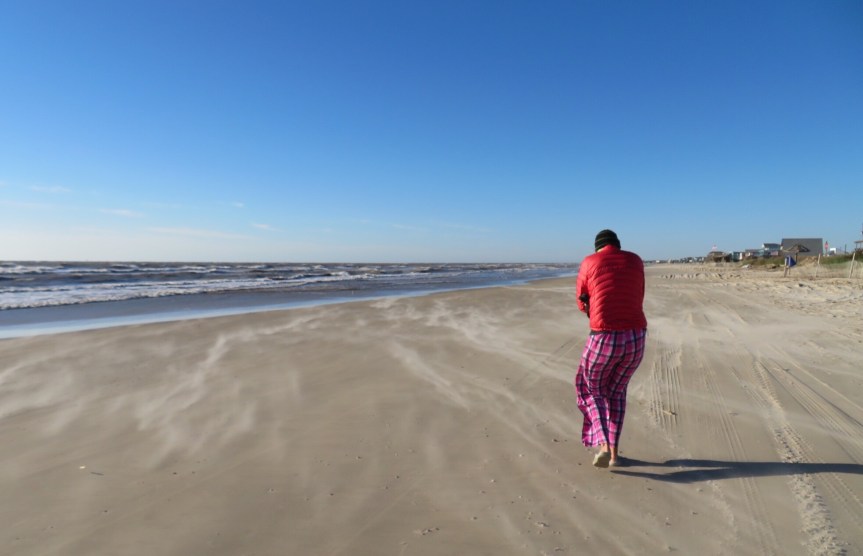 The Texas wind was howling when we woke up this morning. The sound of grackles hopping around on the roof accompanied me as I got up to make a cup of tea. It was cold to go along with windy this morning, so we got back under the covers and huddled together to keep warm.