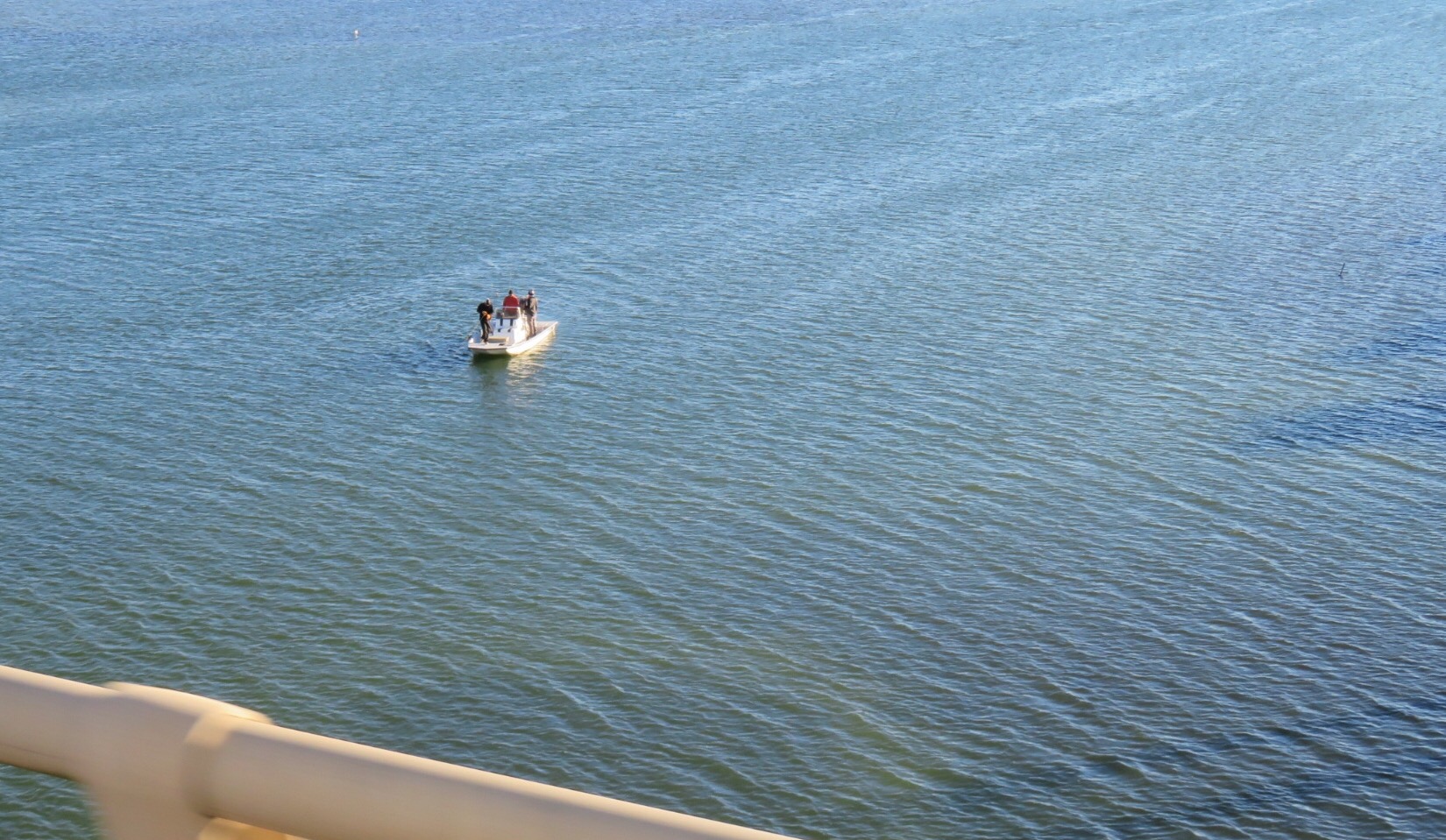 Long tiring day driving in the wind. Expansive flat stretches of grassland punctuated every so often by an oil refinery or some kind of industrial plant. Big straight aways allowed those in a hurry to make daring passes and continue on their way. Narrow bridges took us over sparkling waterways with fishermen wading in the shallows or working the sand bars in boats. We passed through resort towns and working class hamlets. We made a shopping stop at a H E B in Port Lavaca to pick up a couple of items we had forgotten the other day.
