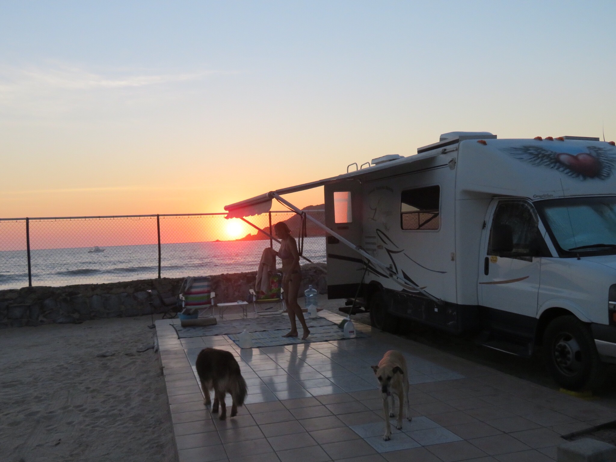 Upon our return, we moved everything over a few spots and turned Lexi facing south so we were no longer in the fish bowl for the hotel next door. Got the patio area arranged nicely, cleaned things up then went for another swim in the warm Pacific waters. No need for dinner after our late lunch. There was supposed to be some big fireworks display on the malecon in honor of the marathoners, but we failed to see it from our patio. It was a nice evening to sit out there anyway so we enjoyed the breezes and the cooler weather that we are feeling tonight.
