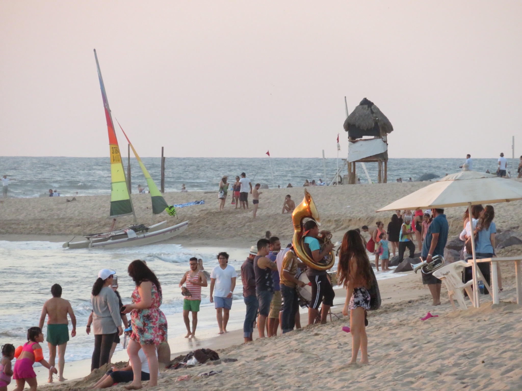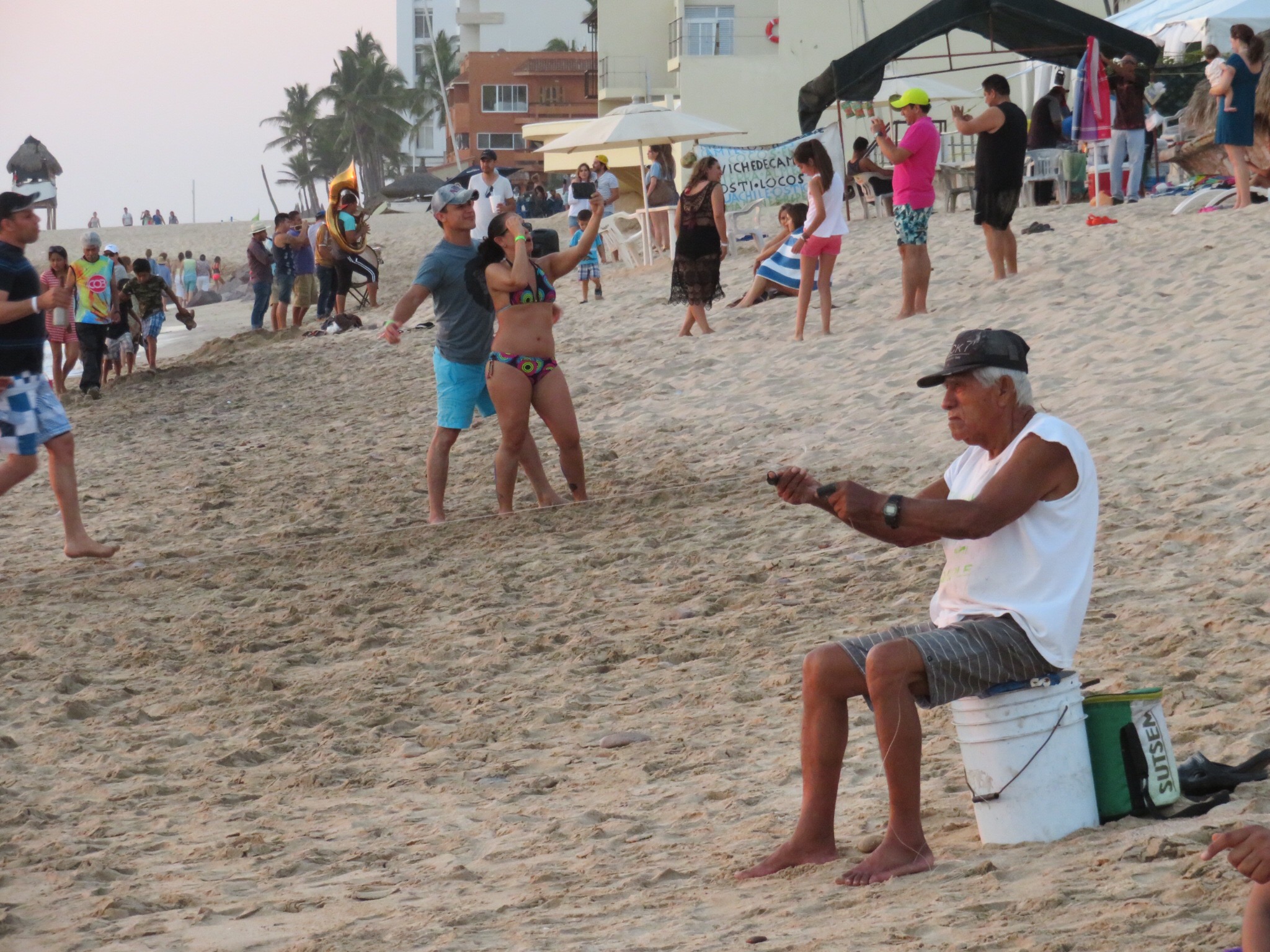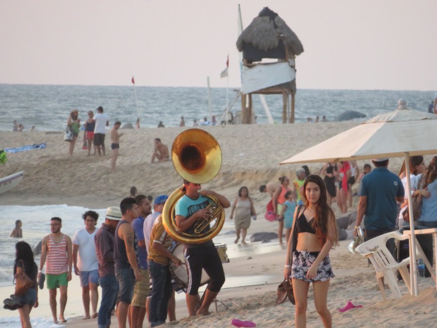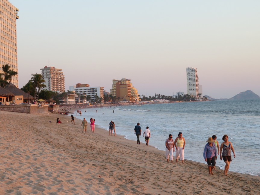 With all of the business out of the way, it was finally time to take a dip in the warm blue Pacific. There are quite a few Mexican tourists in town for the weekend since Sunday is the day for the annual Mazatlan marathon, a pretty big deal in town. We took the dogs out with us and they swam a bit then harassed the other bathers at the beach. After Koda tried sneaking a sip from a guys Ballena, we decided to take them back through the gate and sit around on our patio to let them dry off. Water was 82 degrees and the air 85, perfect for a lazy afternoon plunge.
