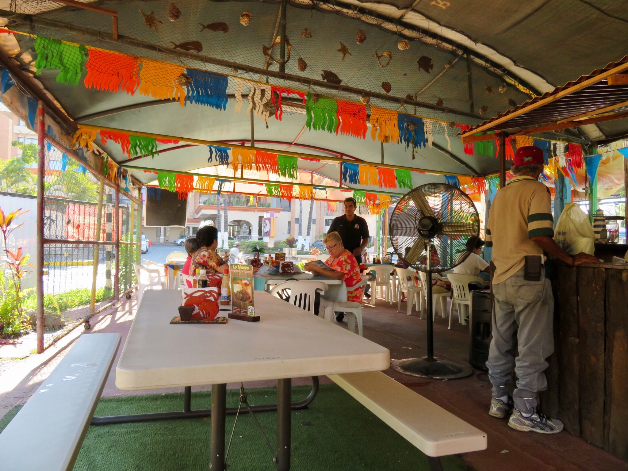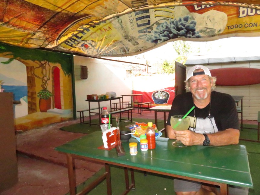 There was an outdoor seafood restaurant across the street from our campsite and we were feeling a little hungry from all of that hard driving, so we dodged traffic and ran over to order up an early dinner. Jose was our waiter and took good care of us. Killer shrimp tacos and PJ ate the quesadillas.