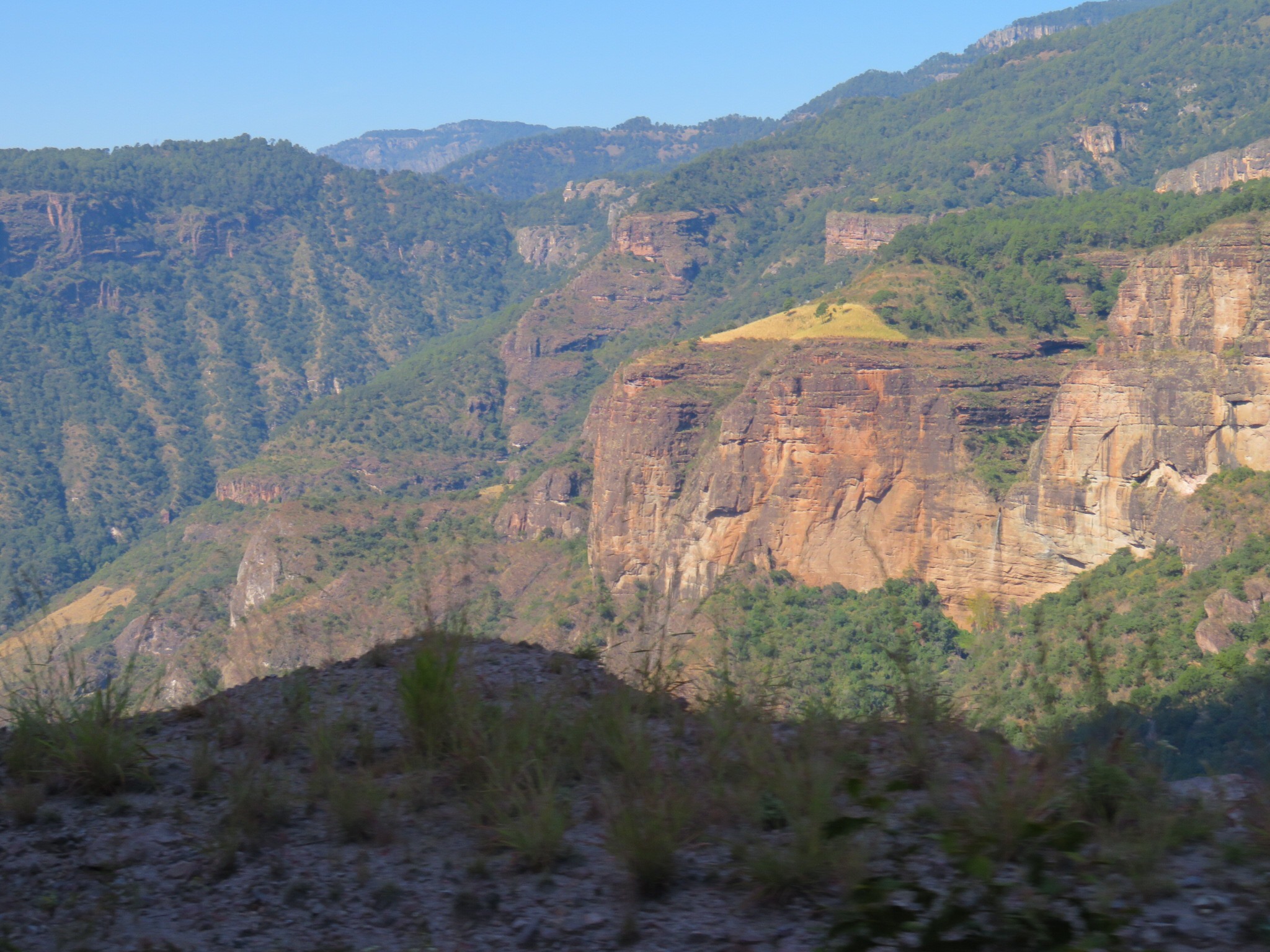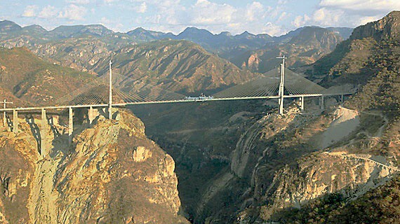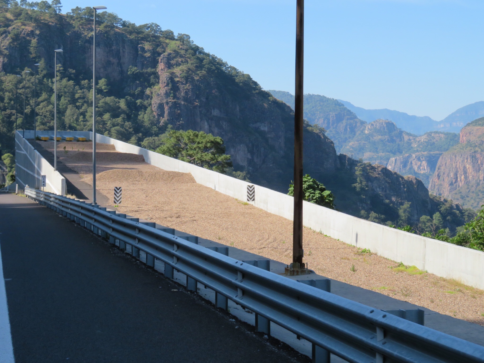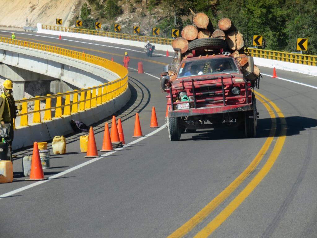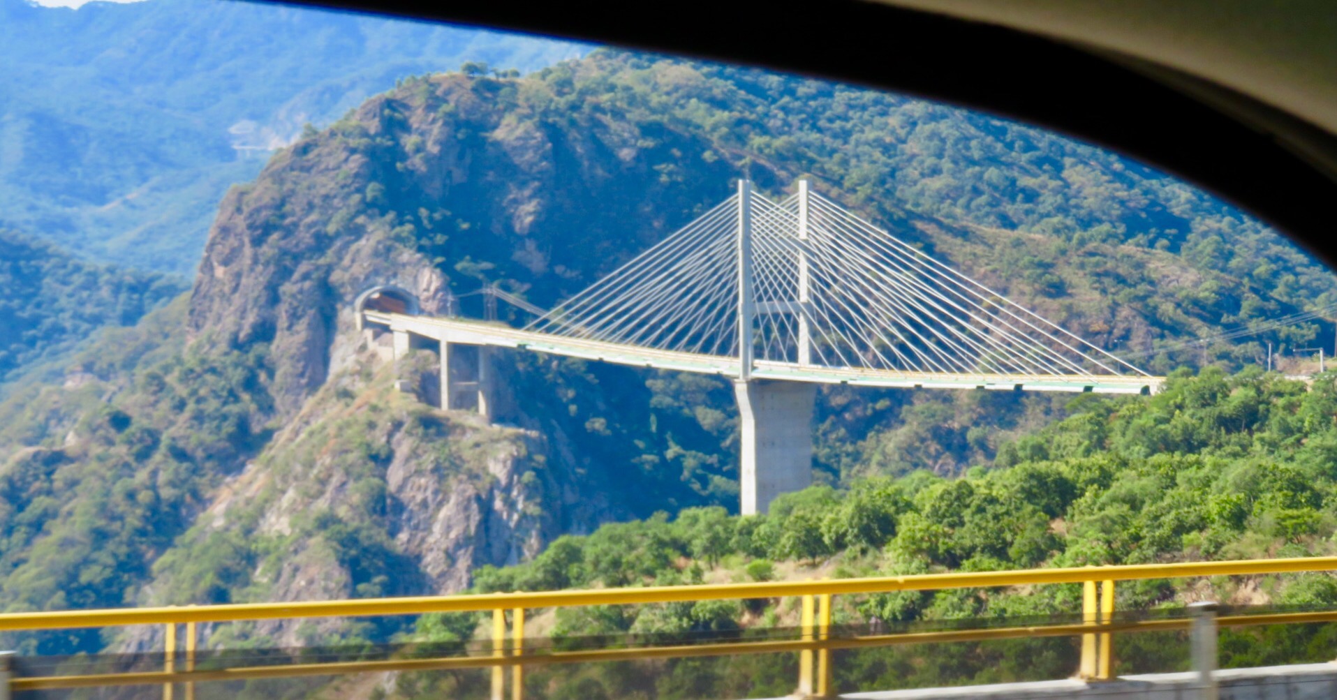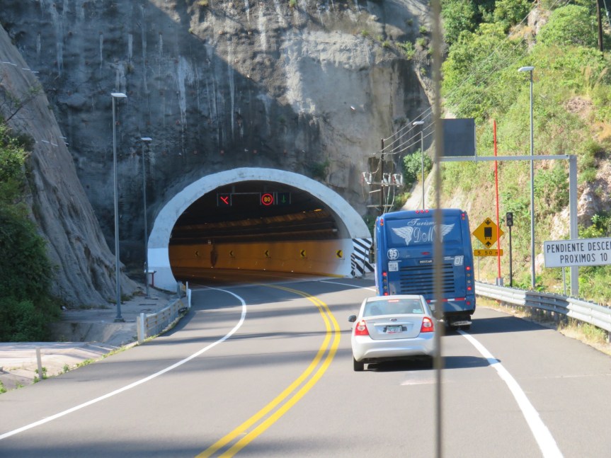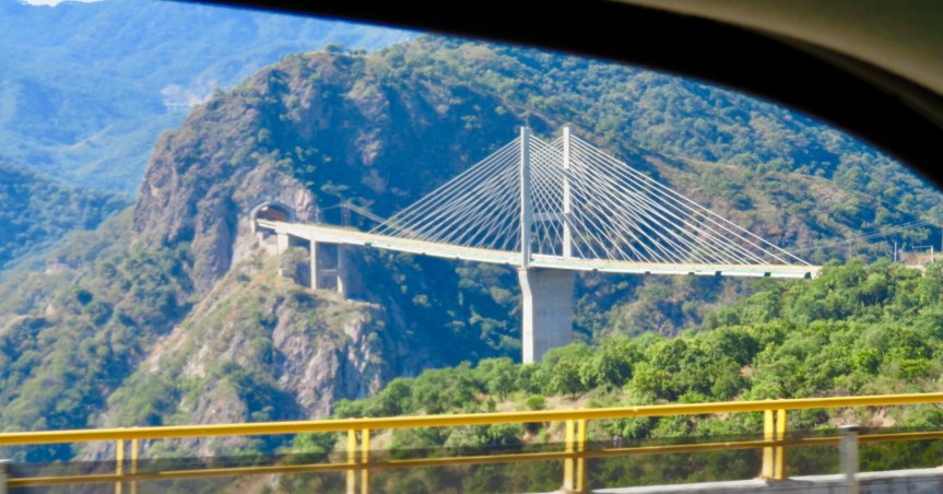The new toll road features 115 bridges and 61 tunnels. It was wild, tunnel right after tunnel. Giant trucks passing each other on blind corners in tunnel after tunnel. They claim to have over ten miles of tunnels that we passed through today. Some really long, others short and sweet. The Baluarte Bridge is the highest cable stayed Bridge in the world. The drop if you should go over the rail is over 1300 feet to the valley below. The time passed quickly as the ride was stimulating and there was constantly something new to see.
