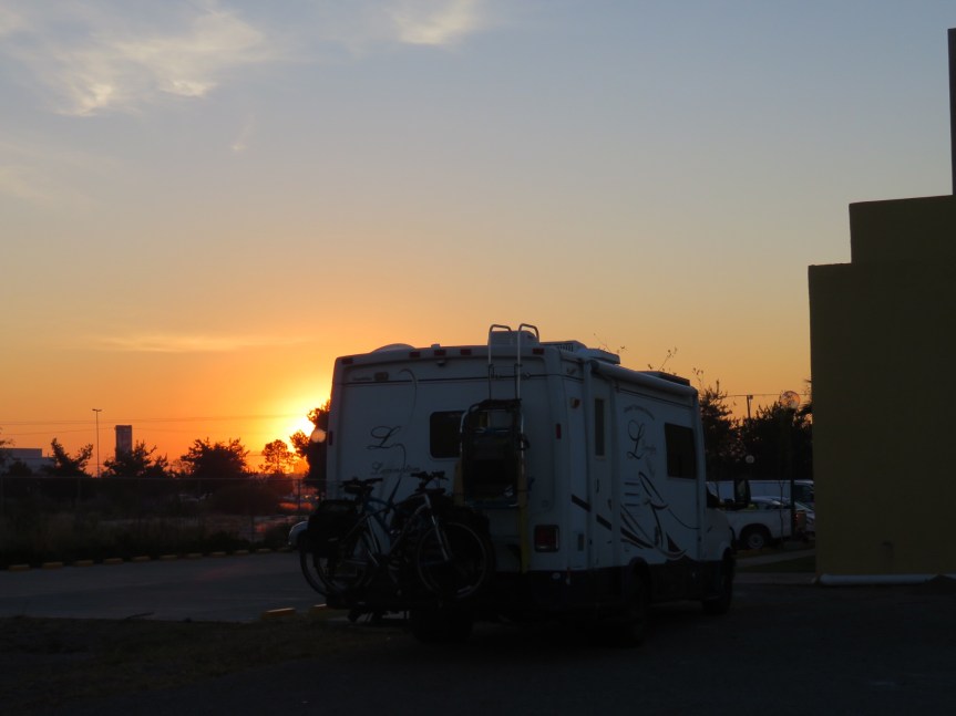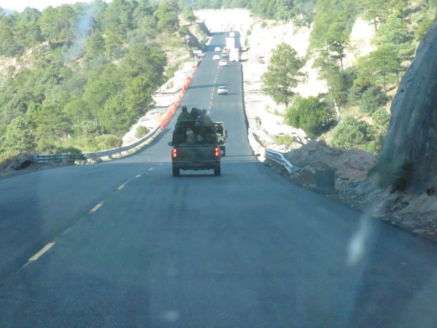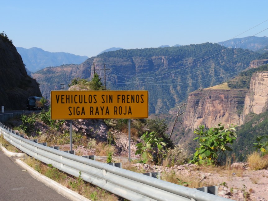 We rose with the sunrise and prepared to hit the road down to Mazatlan. Walked the dogs in the soccer field then loaded the crew into the land yacht and pulled out of our safe little harbor for the night. Stopped at the front desk and thanked them and left a colorful bowl of candy as a token of thanks. If you are passing through Durango and need a safe place to spend the night, stop in at the City Express. They wanted us safely off the road as much as we wanted ourselves off the road. The rooms looked decent and the staff went out of their way for us non-paying hippies. I can only imagine the attention they give to their paying clientele. Mostly businessmen in town for negocios so I figure they know what’s best. Thanks again, Jorge, Peter and the staff.