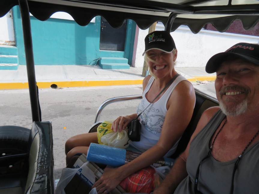 We let the dogs out and walked around on the beach, then it was time for an afternoon nap. The laundry guy, Gerardo roused me from my rest delivering our batch of clean laundry. Joe was at the fence talking to Gary, so I joined them for a while but slipped away to rest inside. I hadn’t realized how late it was getting, but soon the sun was setting and we had yet to hit the bank for more pesos. We hailed a pulmonia out front and rode down to the Banamex and withdrew some cash. PJ has been wanting a poncho/shawl kind of garment like her friend Clair used to often wear. Something casual to keep her knees warm if we are sitting outside and the temperature starts to drop.