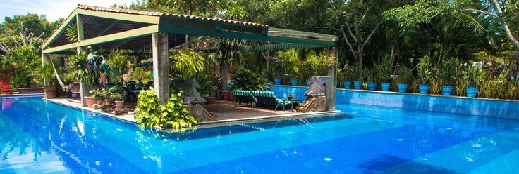 Took a few minutes to regroup at the Oxxo out at the intersection with highway 200. We’ll have to come back when things slow down a little. Thought we might check out the Punta Mita area so I called the trailer park Los Arroyos Verdes in Bucerias and they said they had a spot, so we saddled up and continued on towards P.V. I got my first taste of driving in the lateral lanes, making a left turn from the far right lanes. Found Los Arroyos easy enough and they sent us down to the far gate for the RV sites. Had to scrape up against a bunch of overgrown trees getting in. Obviously the RV section sees very little use. We were the only RV there besides a little tear drop trailer that was being stored there.