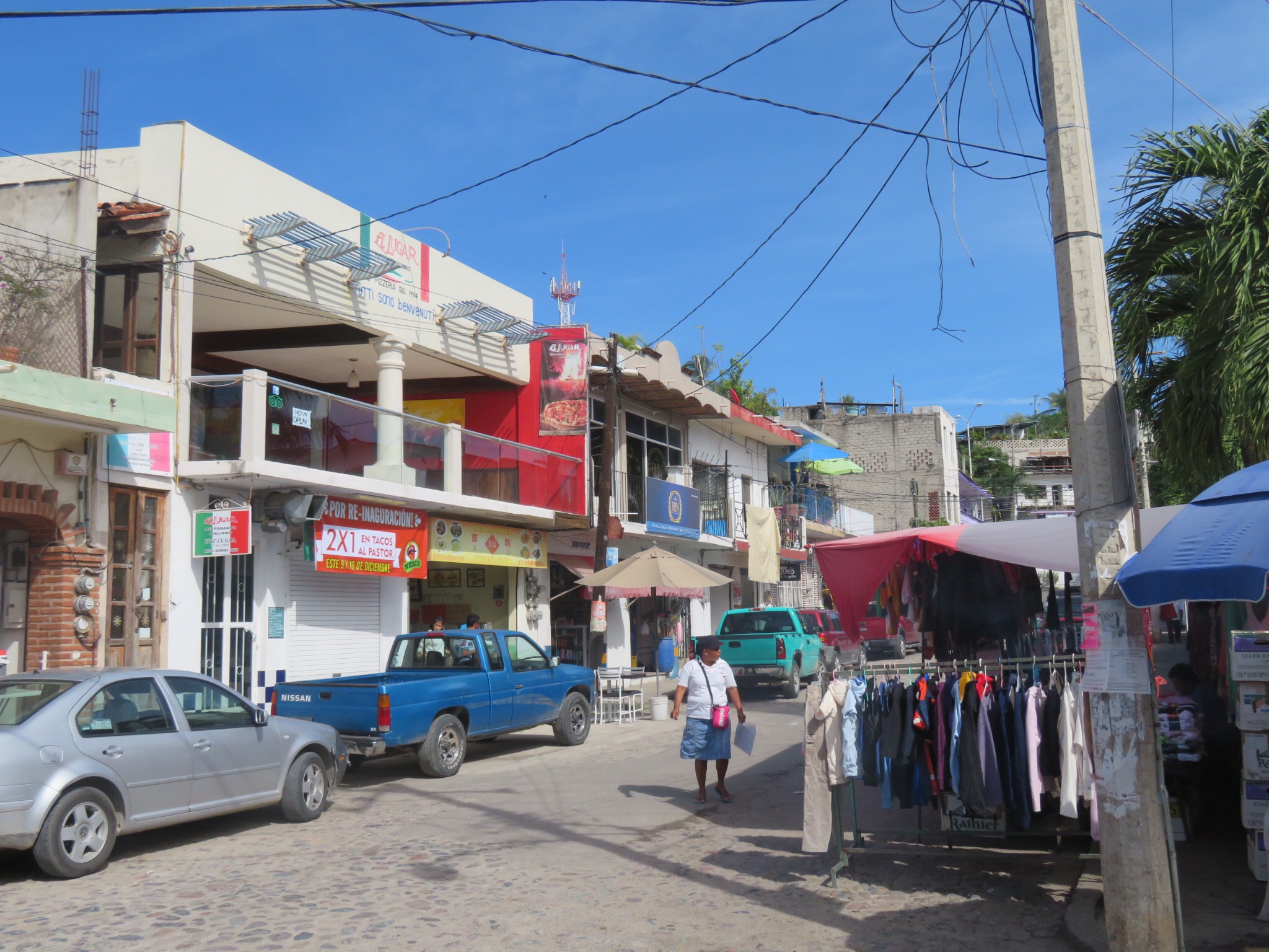 We walked down the street towards the beach and PJ spotted a shop that sells the colorful banners she likes, so we stopped and bought a few and noticed that they also had the Chinese flying lanterns for a buck each so we got a few of those as well. From there we continued on to the plazuela and ordered up some fish tacos at a street stall and kicked back at a table with a couple of strangers and had a tasty lunch.